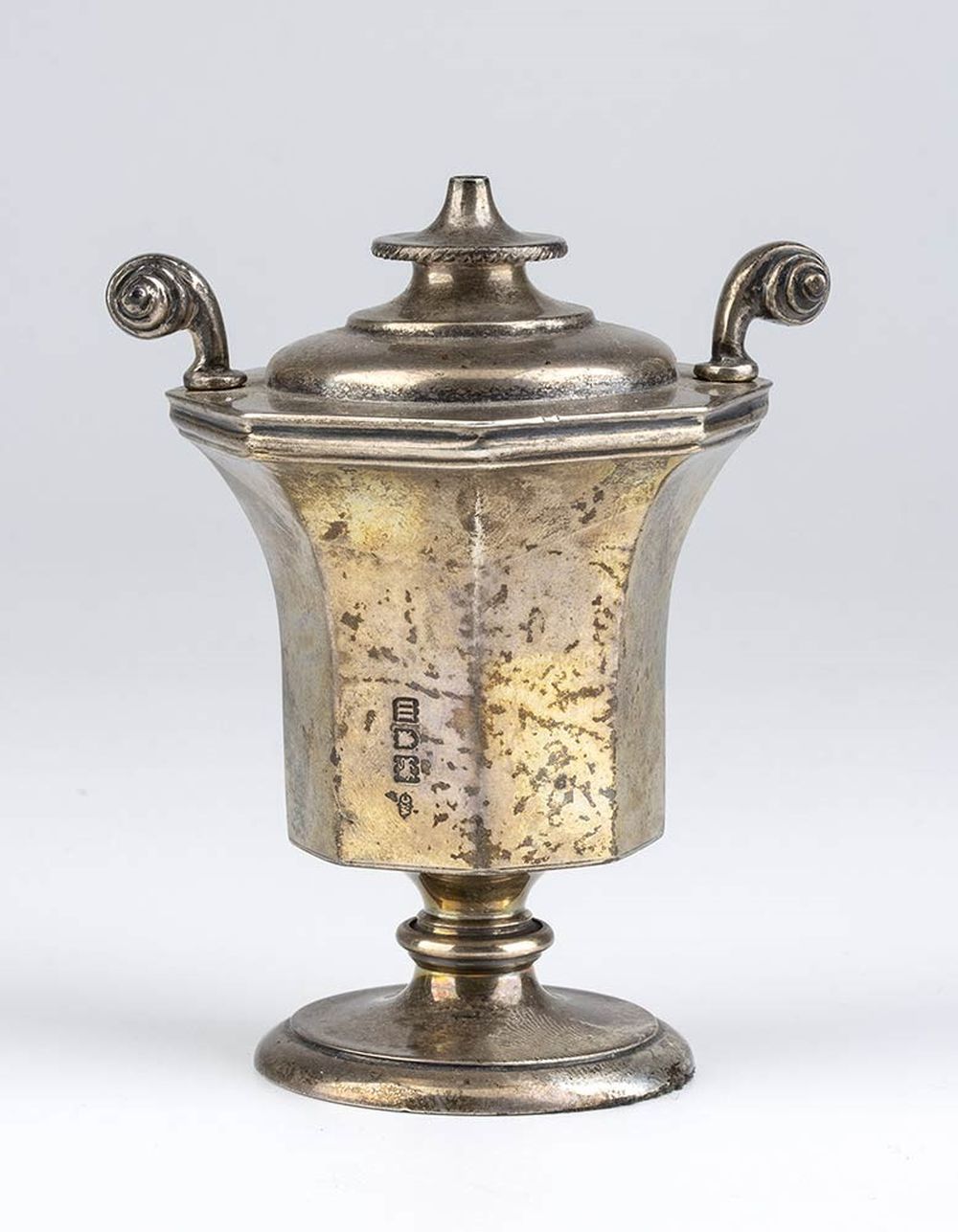 di forma ottagonale. Argento 925/1000, serie completa di marchi Londra 1907-1908, argentiere William Comyns.