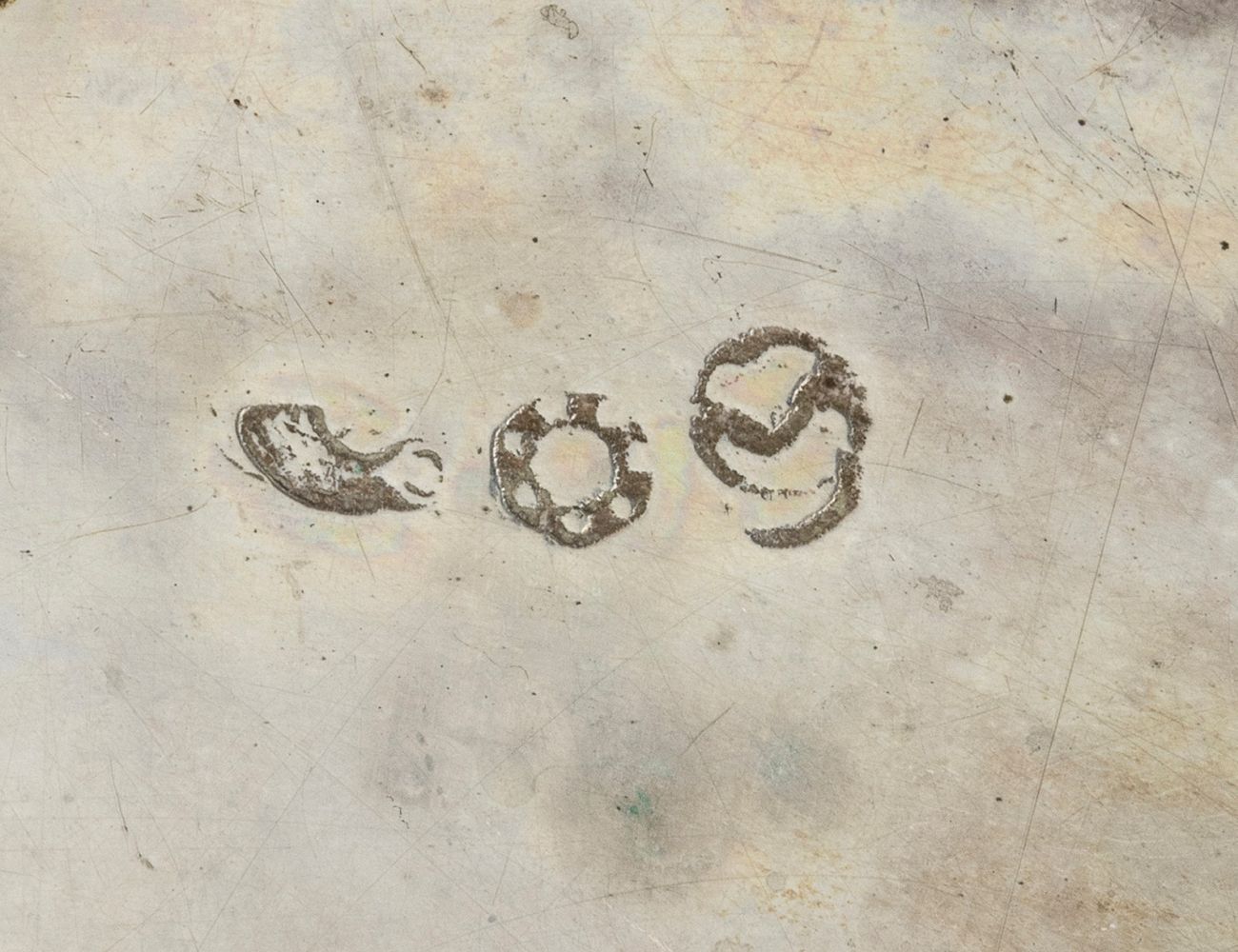 di foma ovale con ringhierina, argento 800/1000, punzonato con marchi ad imitazione Italia XIX secolo.