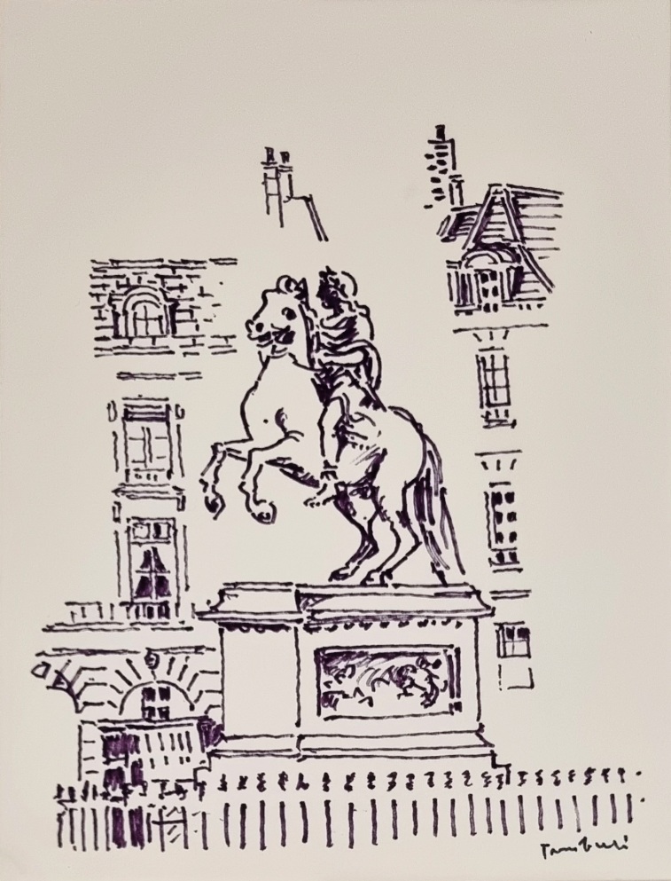 TAMBURI ORFEO Jesi 1910 - Parigi 1994 "Senza titolo" Pennarello su cartoncino cm 16x21, corredato di passepartout. Firmato sul fronte in basso a destra. Autentica su foto a cura del maestro.
