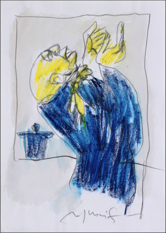 ROGNONI FRANCO Milano 1913 - 1999 "Senza titolo" Tecnica mista su carta cm 21x29,5. Firmata sul fronte in basso a destra. Autentica dell'artista su fotografia.