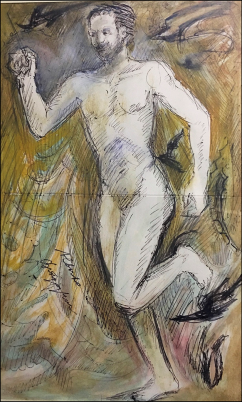 BRAGAGLIA ALBERTO Frosinone 1896 - Anzio 1985 "Atleta" Acquerello su carta cm 26x43. Firmato in basso a sinistra, verso il centro.