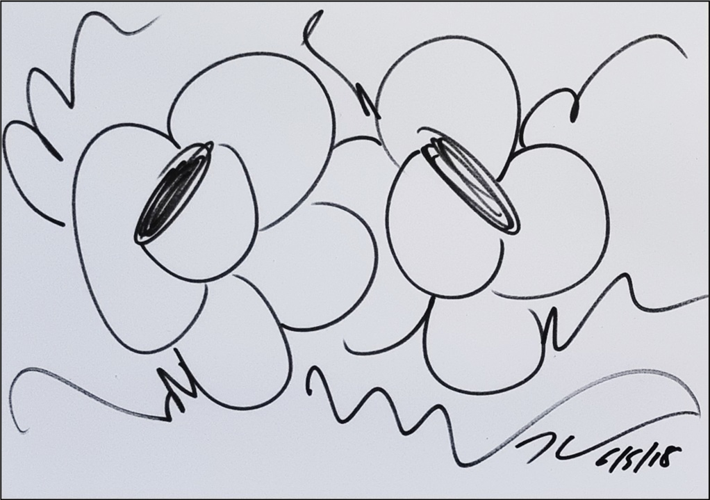 KOONS JEFF Pennsylvania 1955 "Senza titolo" Pennarello su carta cm 29x21 del 2018. Firmato e datato sul fronte in basso a destra. Certificato di autenticità registrato presso Associazione periti calligrafici certificati.