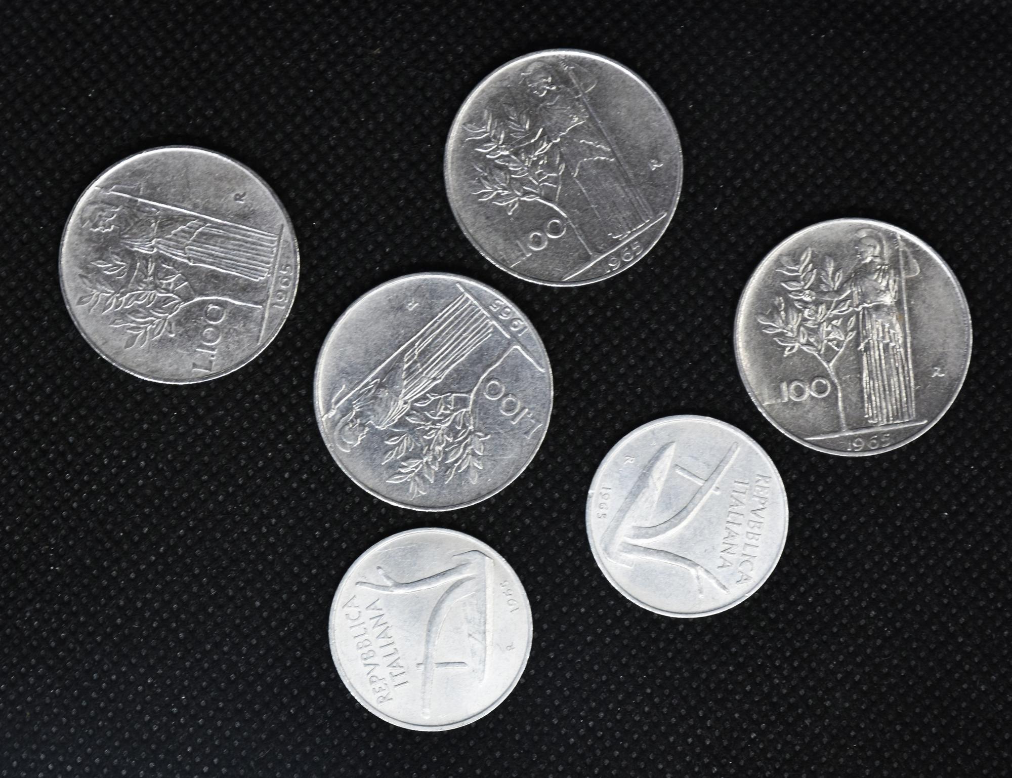 LOTTO DI 6 MONETE REPUBBLICA ITALIANA - 10 lire 1965 - 10 lire 1965 - 100...
