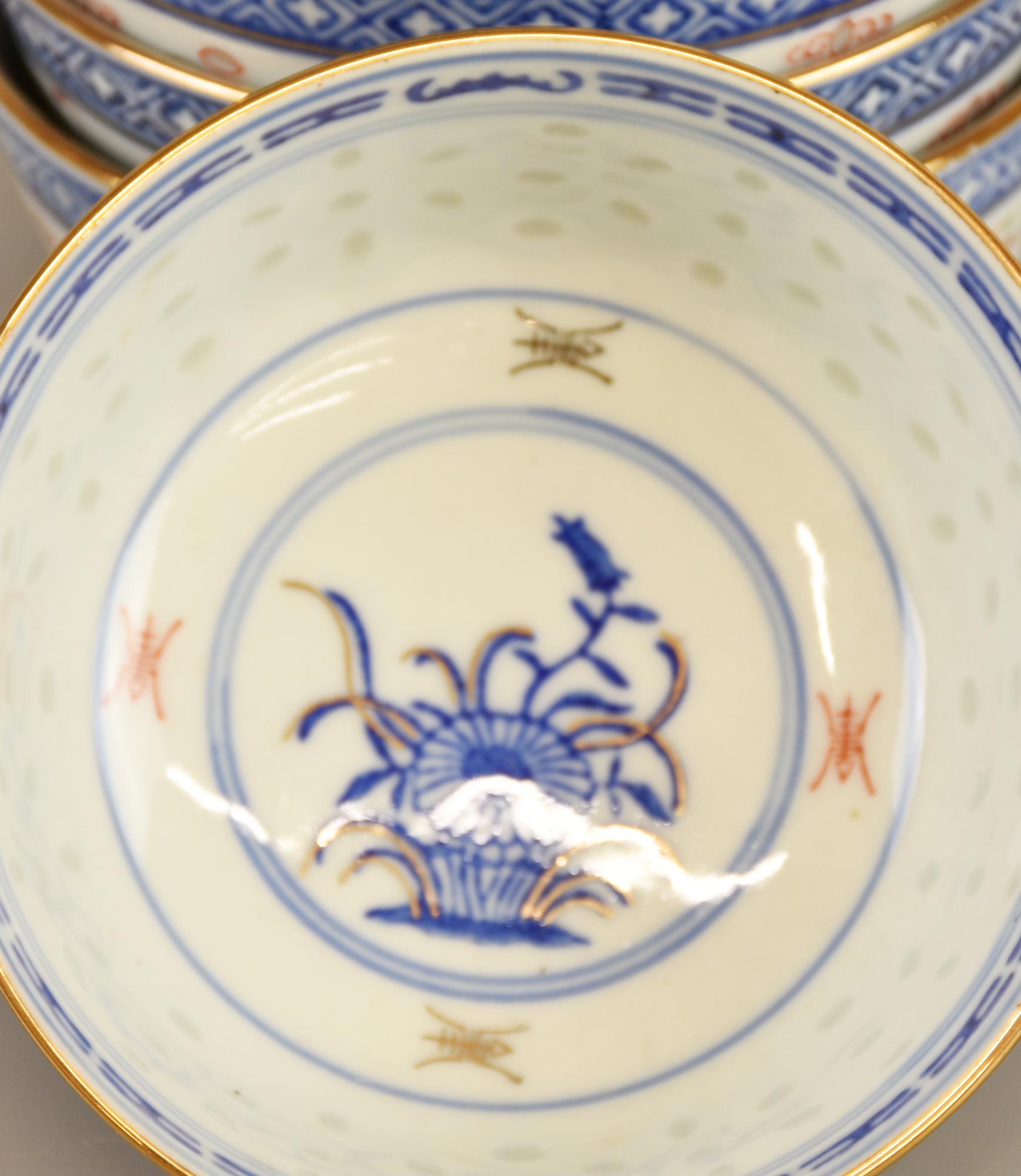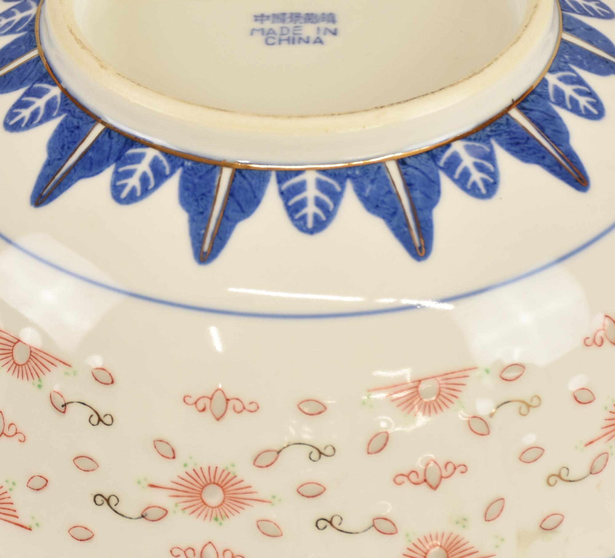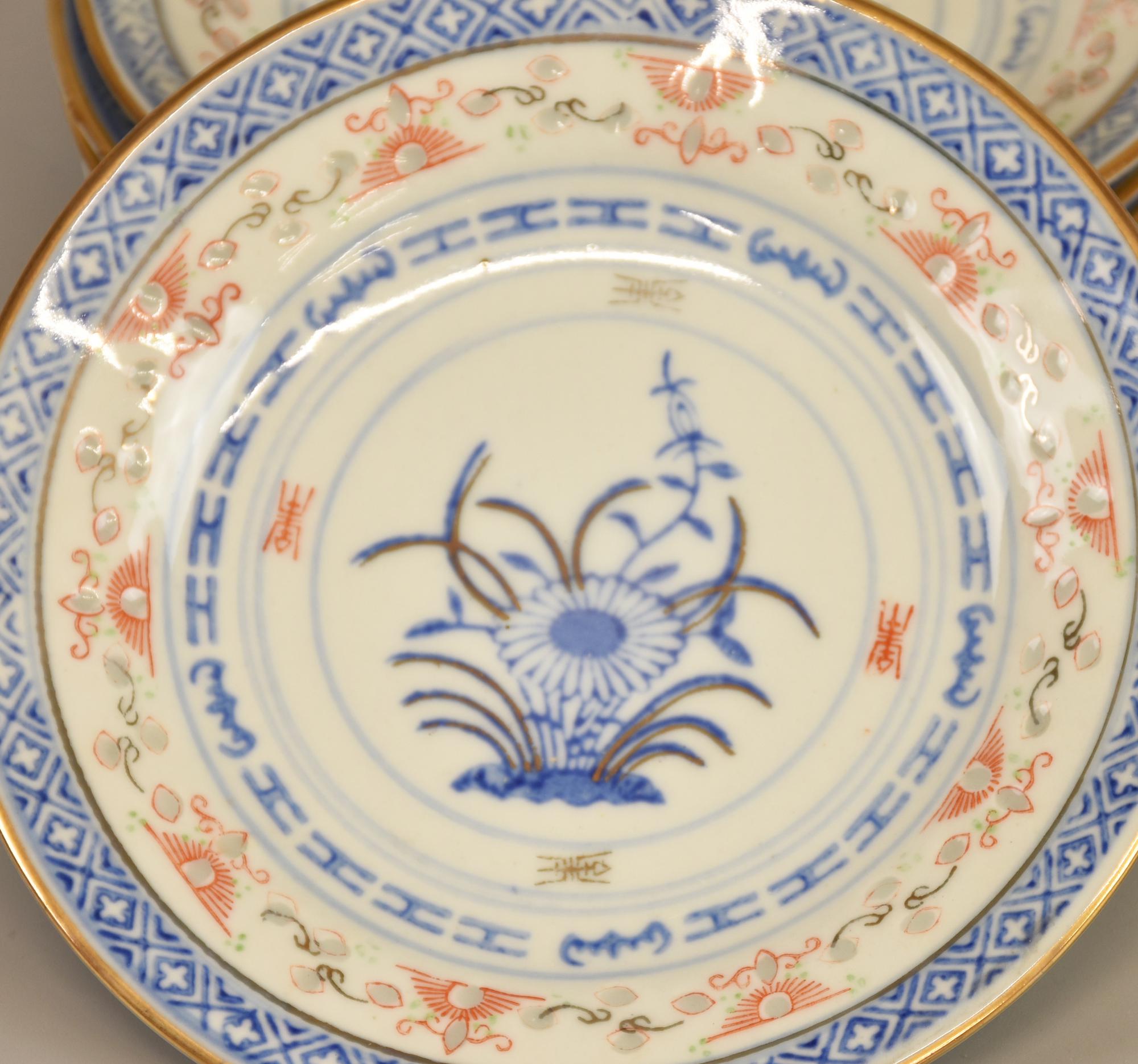 SERVIZIO DA ZUPPA manifattura cinese, in ceramica decorata e inserti in oro...
