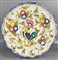 piatto da parata in ceramica con gallo centrale e decorazione floreale