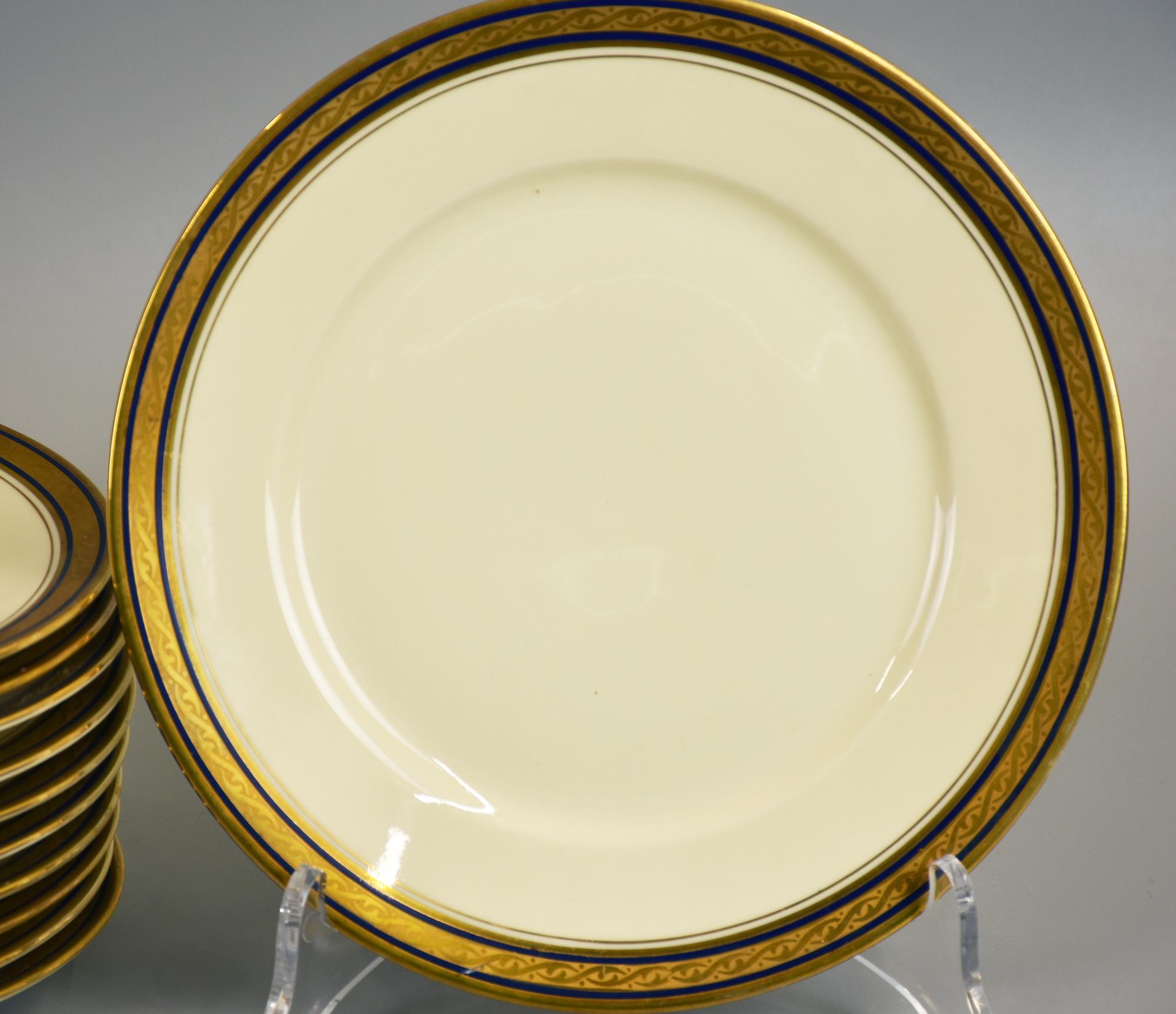 LOTTO DI 11 PIATTINI da dolce in porcellana con decorazioni blu zaffiro e oro...