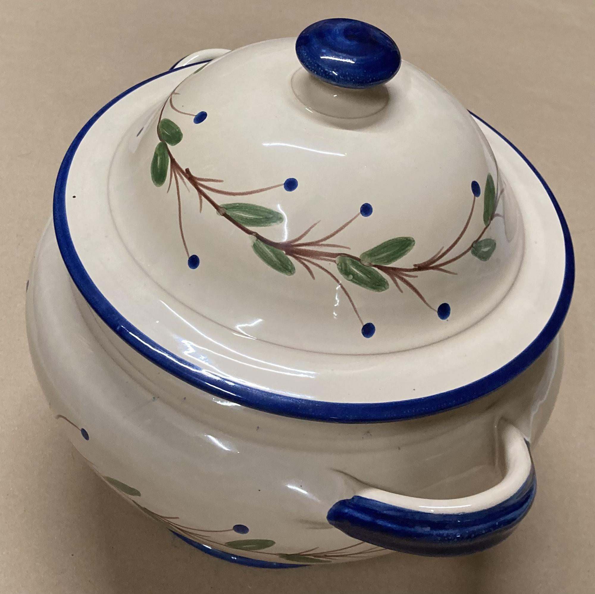 ZUPPIERA IN TERRACOTTA SMALTATA decorata con motivi vegetali
