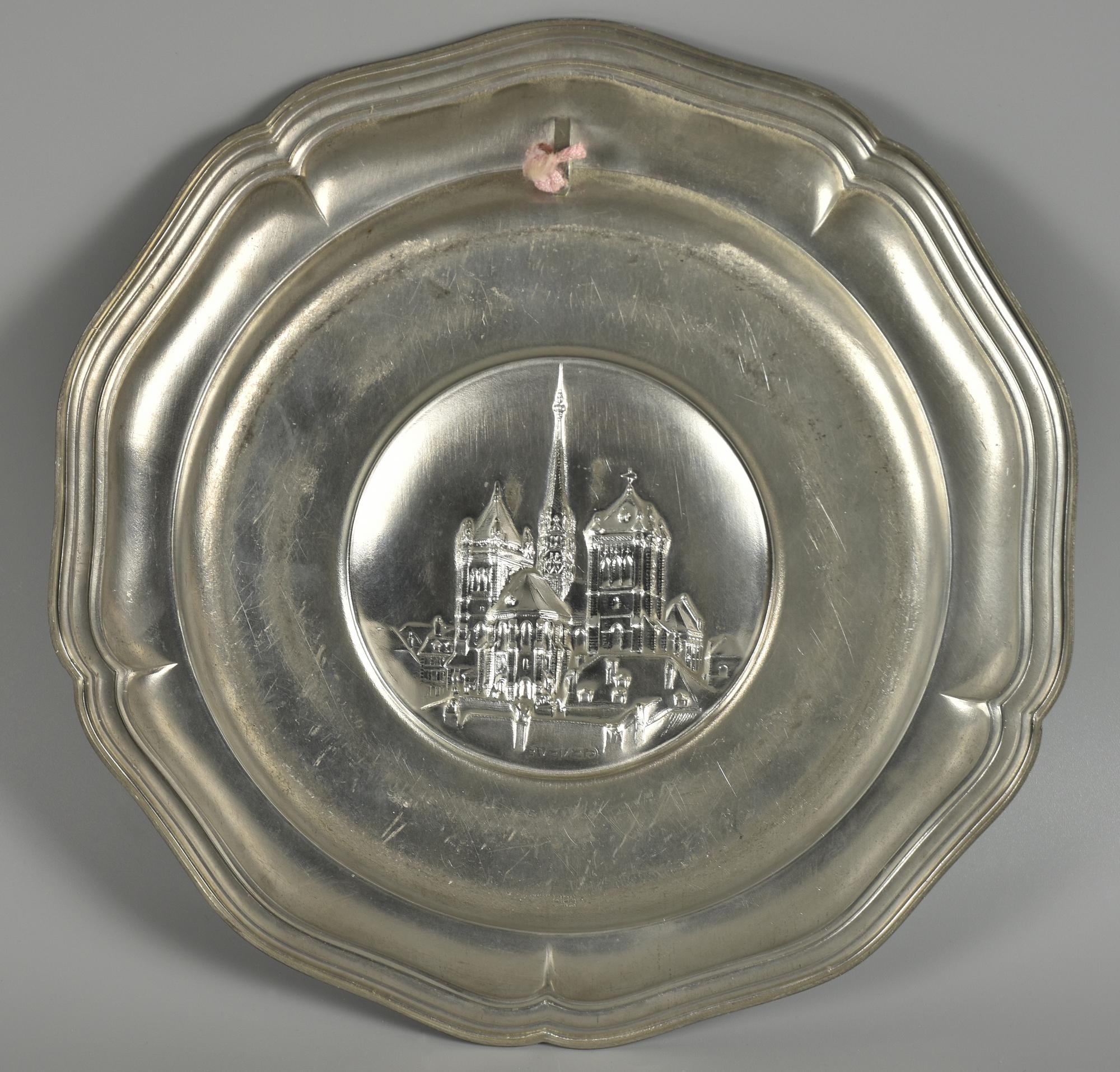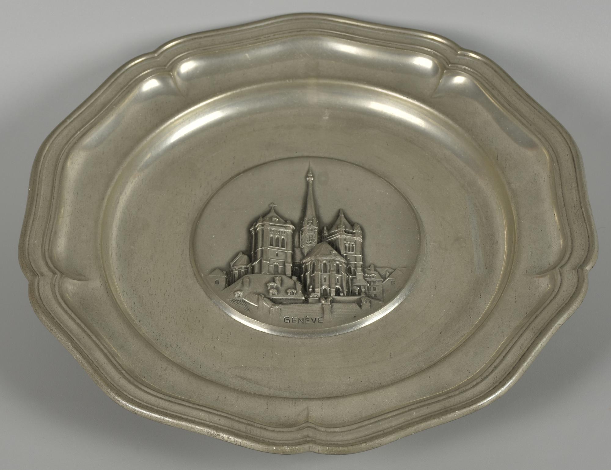 PIATTO IN PELTRO raffigurante veduta di Ginevra dm 25 cm
