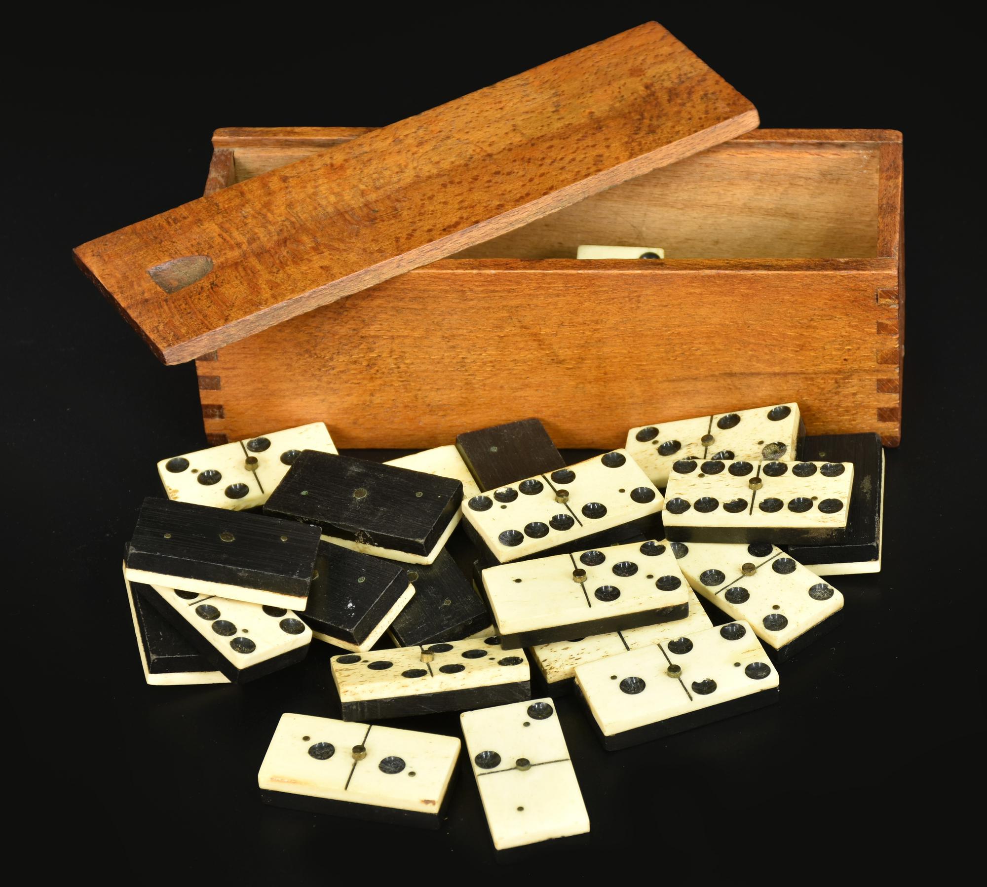 DOMINO domino in osso ebano entro scatola di legno con 25 tessere Piccole...