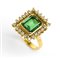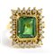 oro giallo 18k, di forma geometrica, incastonato con pasta vitrea verde incorniciata da 22 diamanti rotondi taglio brillante 0,70 ct circa, H-I, VVS. Punzonato "750".
