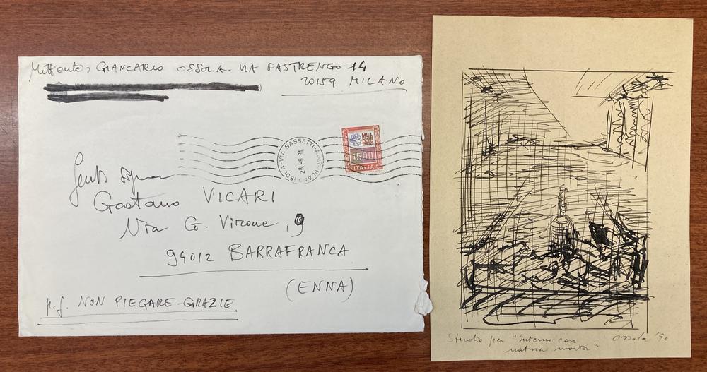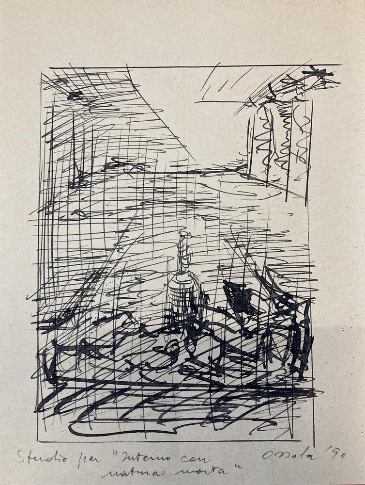 Giancarlo Ossola STUDIO PER UN INTERNO CON NATURA MORTA china su carta, cm...