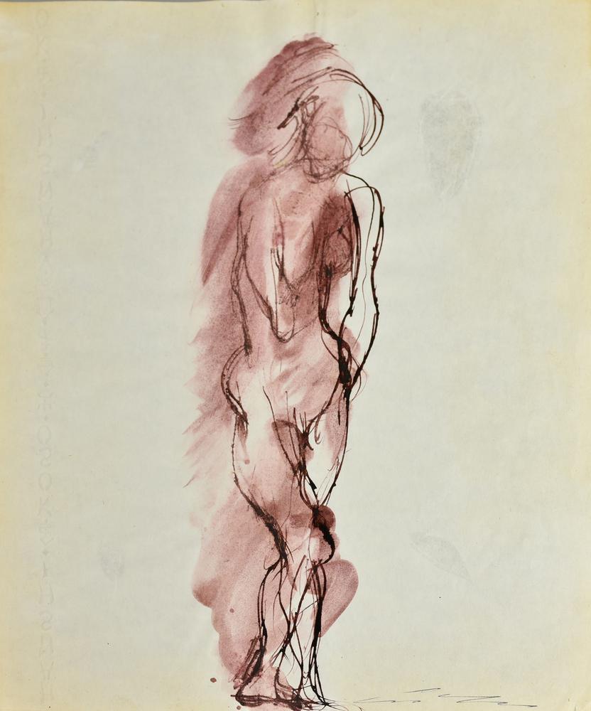 Ernesto Treccani FIGURA china acquarellata su carta, cm 28x22 firma...