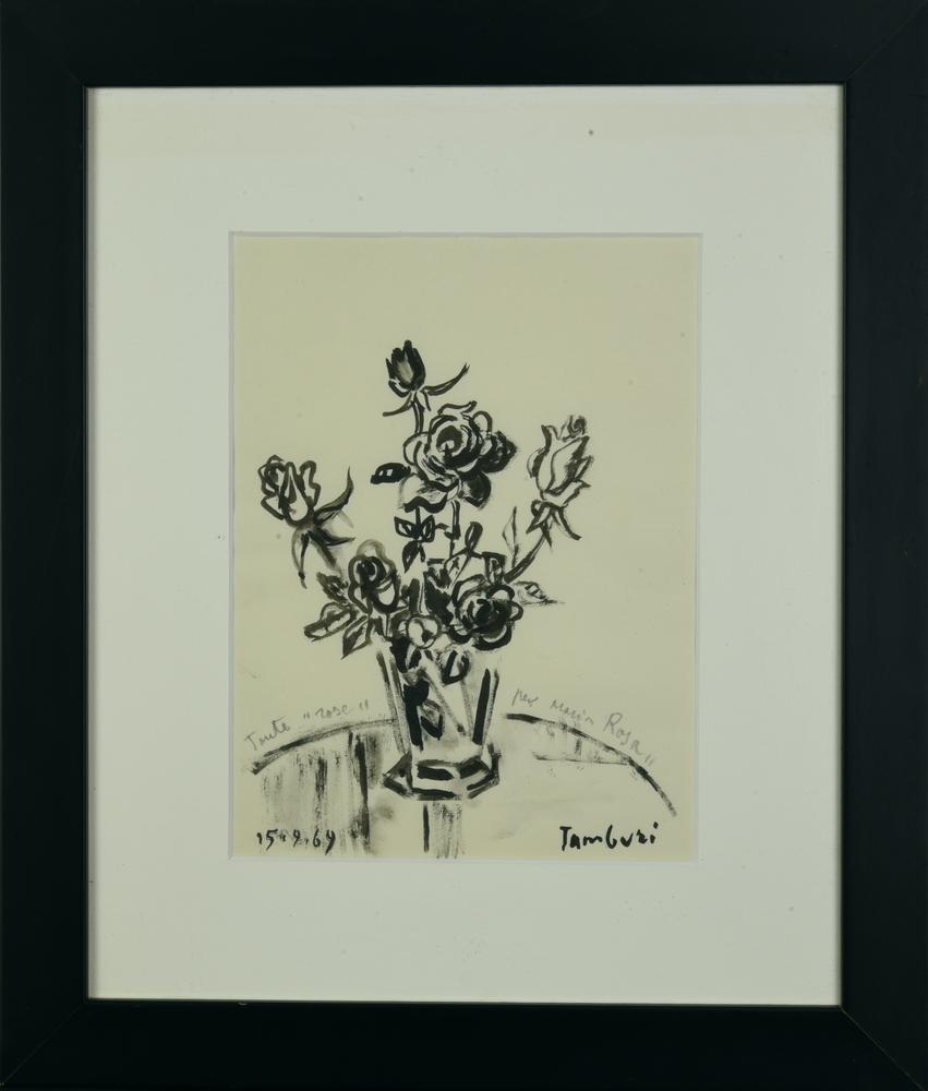 Orfeo Tamburi ROSE, 1969 china su carta, cm 21x16 firma, data e dedica ad...