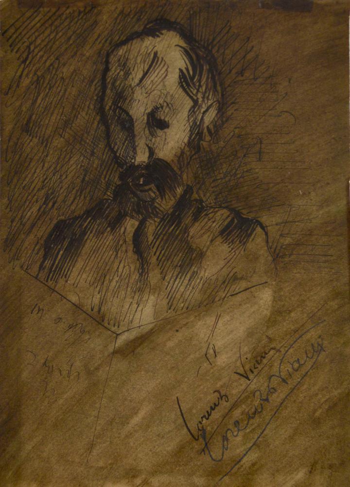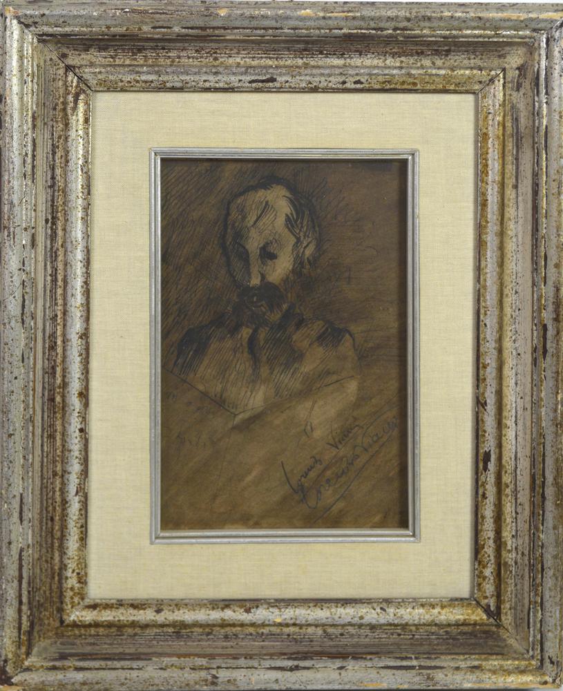 Lorenzo Viani RITRATTO MASCHILE china su carta, cm 28x19,5 firma sul retro:...