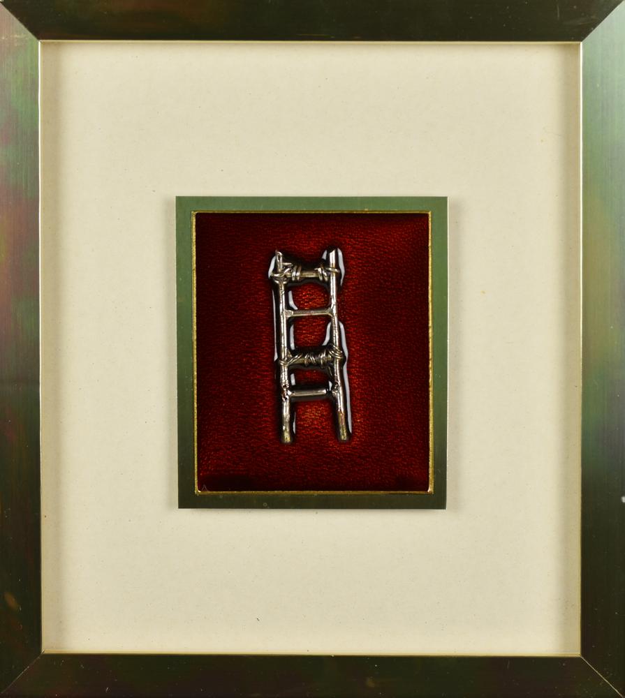Emilio Scanavino LA SCALA fusione in metallo argentato su sfondo smaltato,cm...