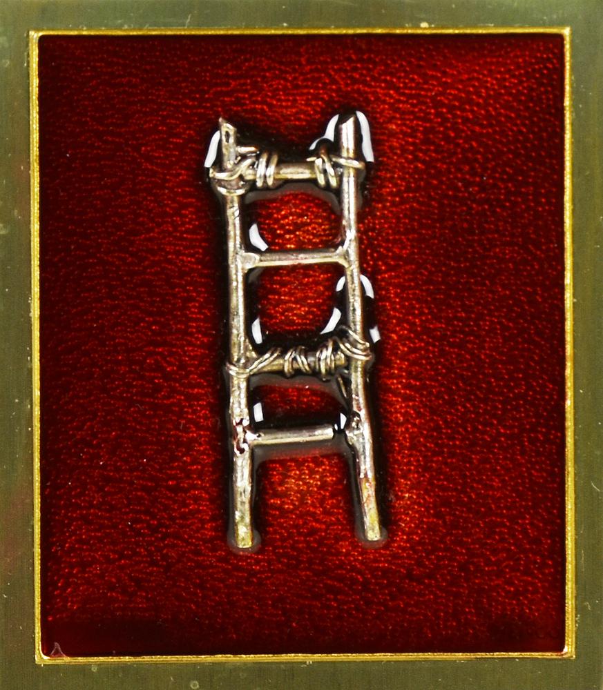 fusione in metallo argentato su sfondo smaltato, cm 11,2x9,2; es. 716/900