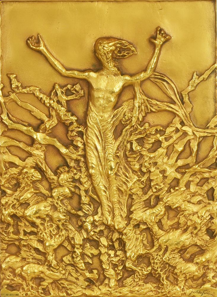Pericle Fazzini RESURREZIONE multiplo in bronzo dorato, cm 32x23; es. E/C AU...