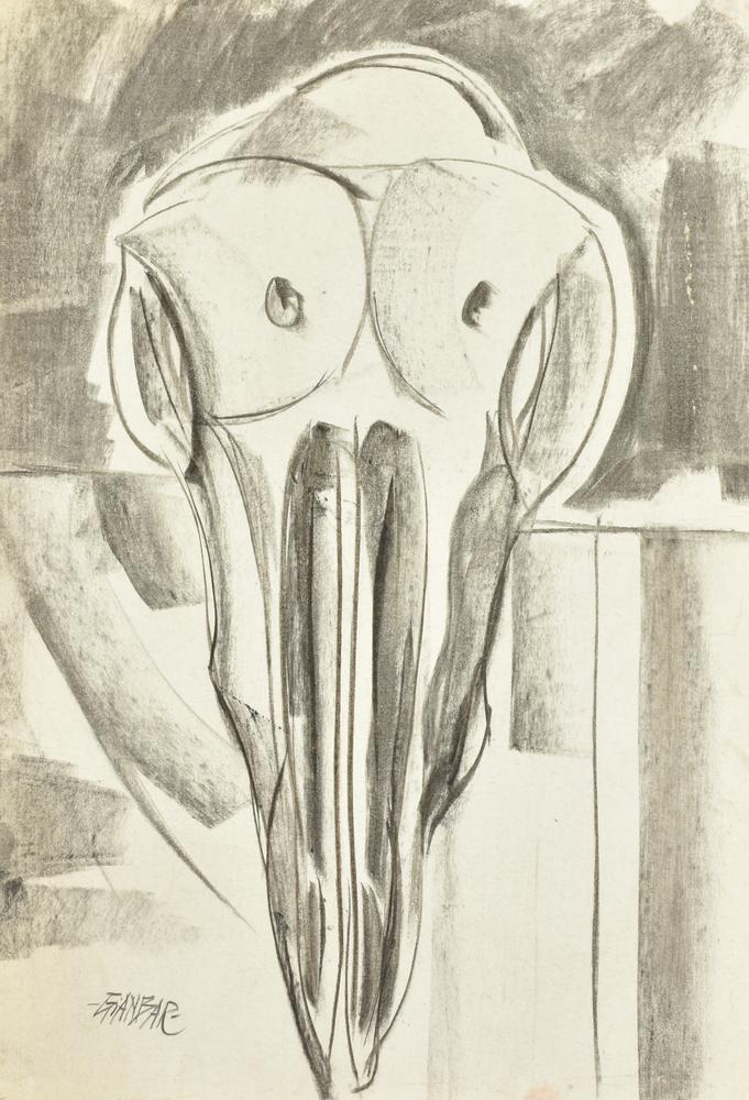 GIANBAR (Gianni Baretta) GRANDE BUCRANIO carboncino su carta applicata su...