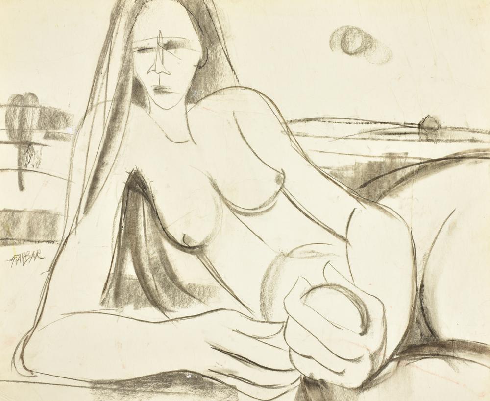 Lot 203 | GIANBAR (Gianni Baretta) DONNA CON MELA carboncino su carta applicata su...