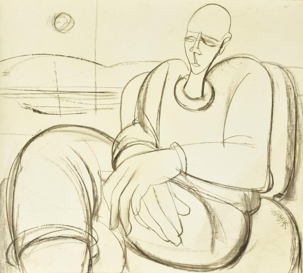 GIANBAR (Gianni Baretta) ATTESA carboncino su cartoncino, cm 58x66 firma