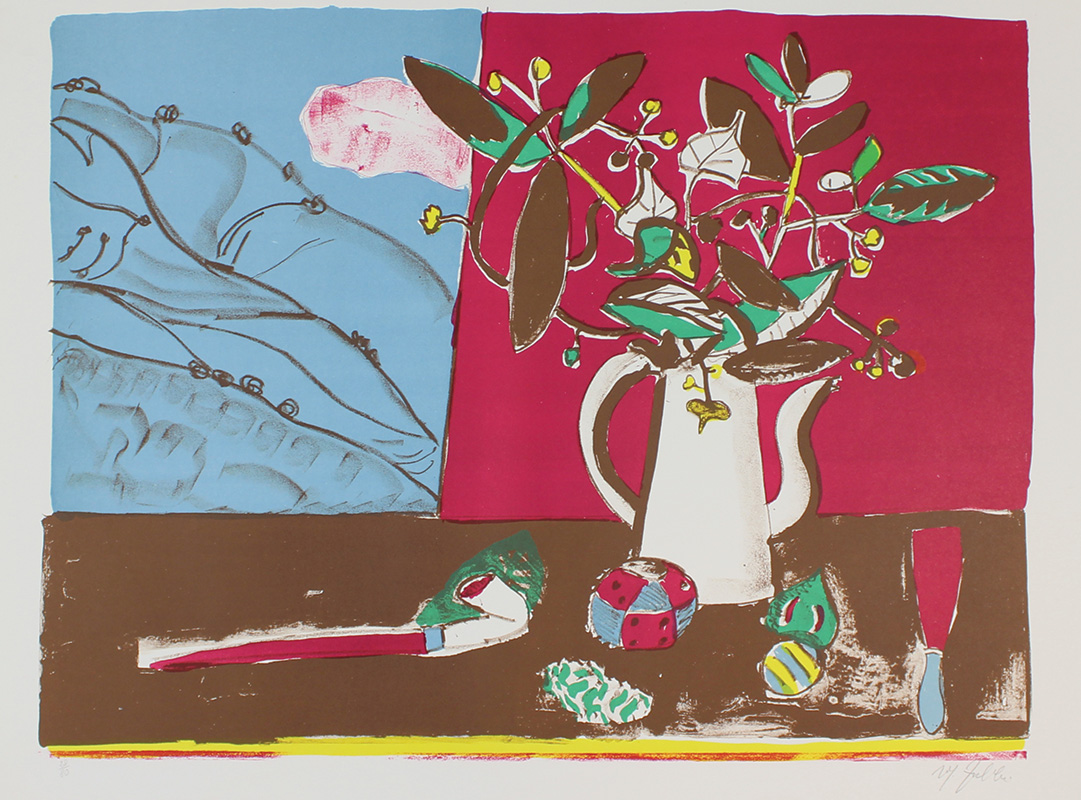 Fabbri Alfredo Paesaggio e natura morta, 1973 litografia a colori su carta,...