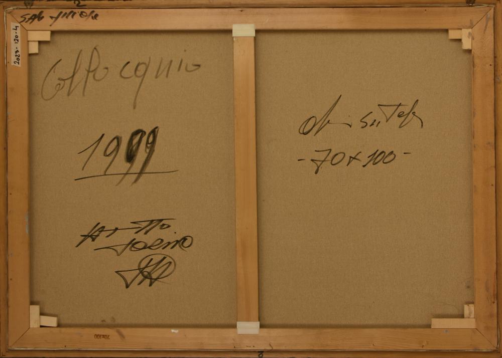 Adriano Tuninetto COLLOQUIO, 1999 olio su tela, cm 70x100 firma sul retro:...