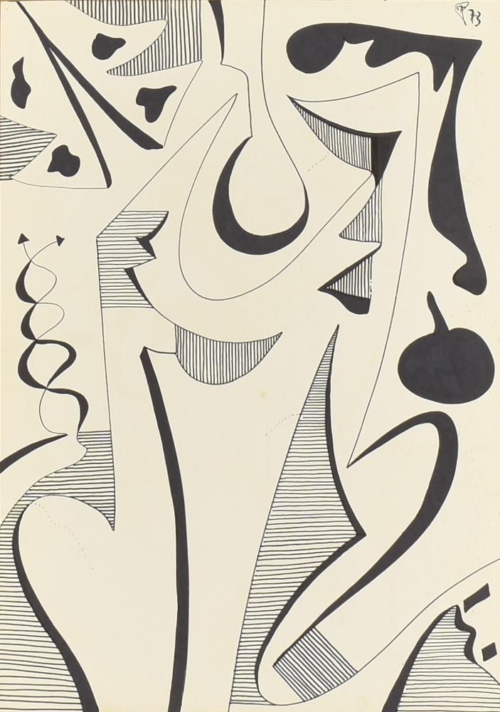 Ignoto COMPOSIZIONE, 1973 pennarello su carta, cm 34x24 sigla e data