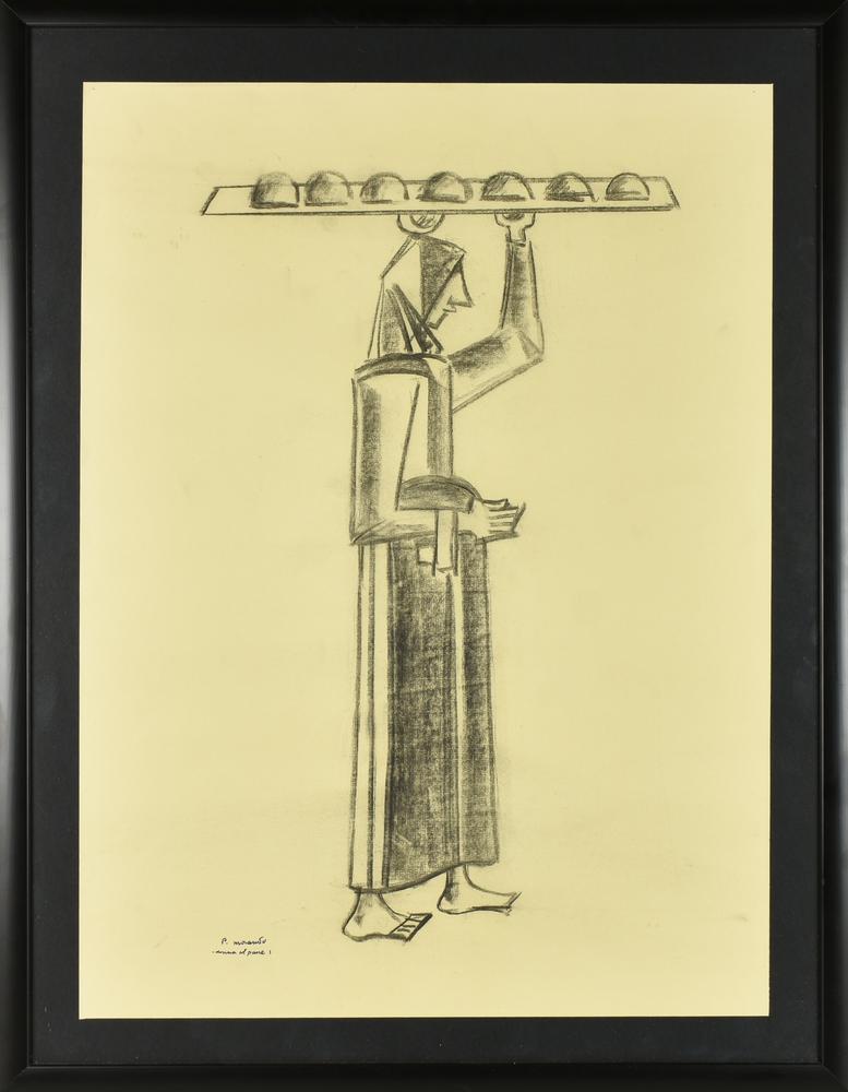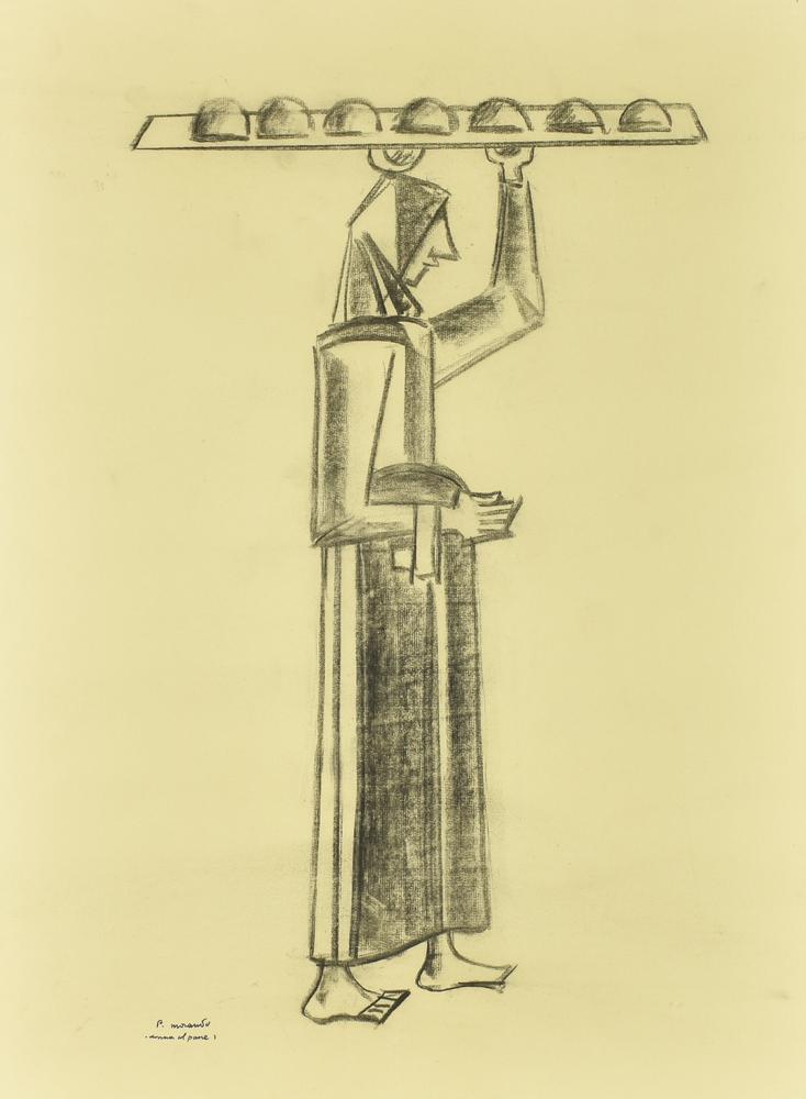 Pietro Morando DONNA COL PANE carboncino su carta, cm 65,5x47,5 firma e titolo