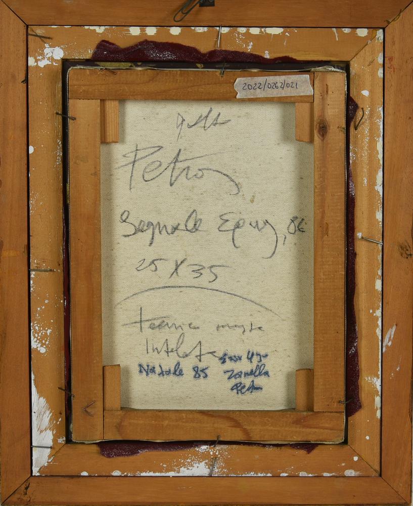 Petros SEGNALE tecnica mista su carta applicata su tela, cm 35x25 firma sul...