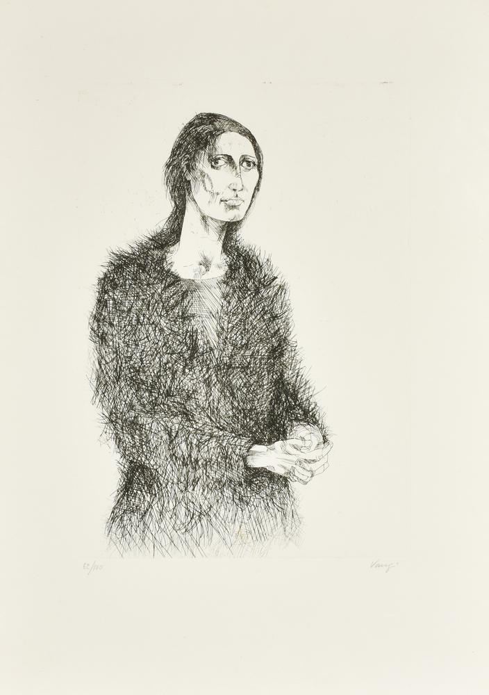 Giuliano Vangi RITRATTO FEMMINILE acquaforte, cm 47x32,5, su foglio 76x55;...