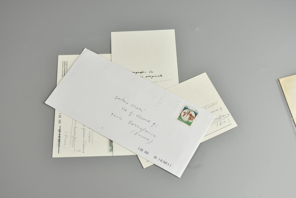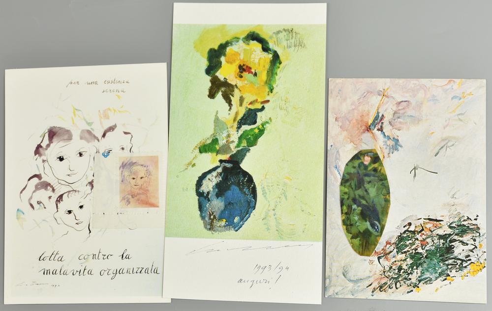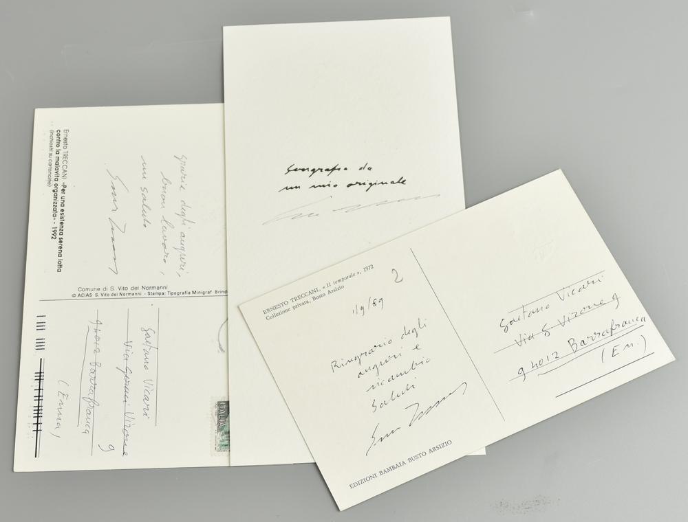 -2 cartoline con collage con firma e dedica sul retro