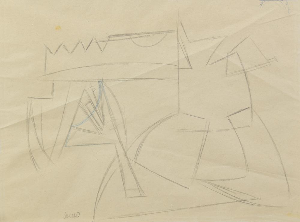 Atanasio Soldati COMPOSIZIONE matita su carta, cm 21x28 firma sul retro:...