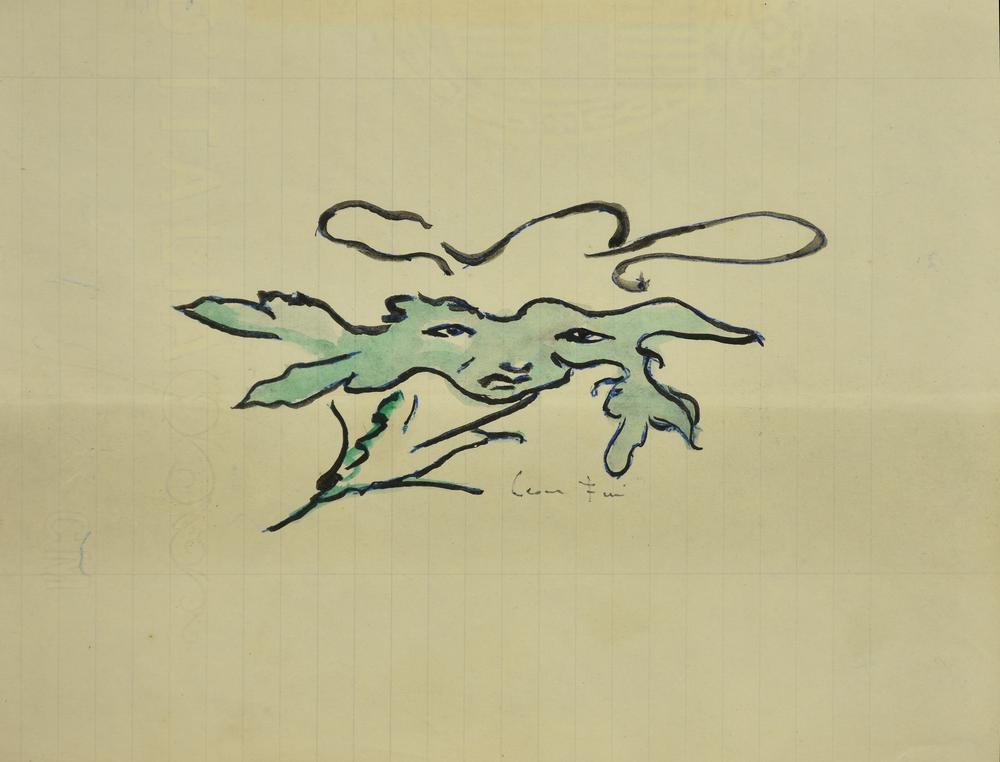 Leonor Fini MASCHERA acquarello e pennafeltro su carta, cm 21,5x29 firma...