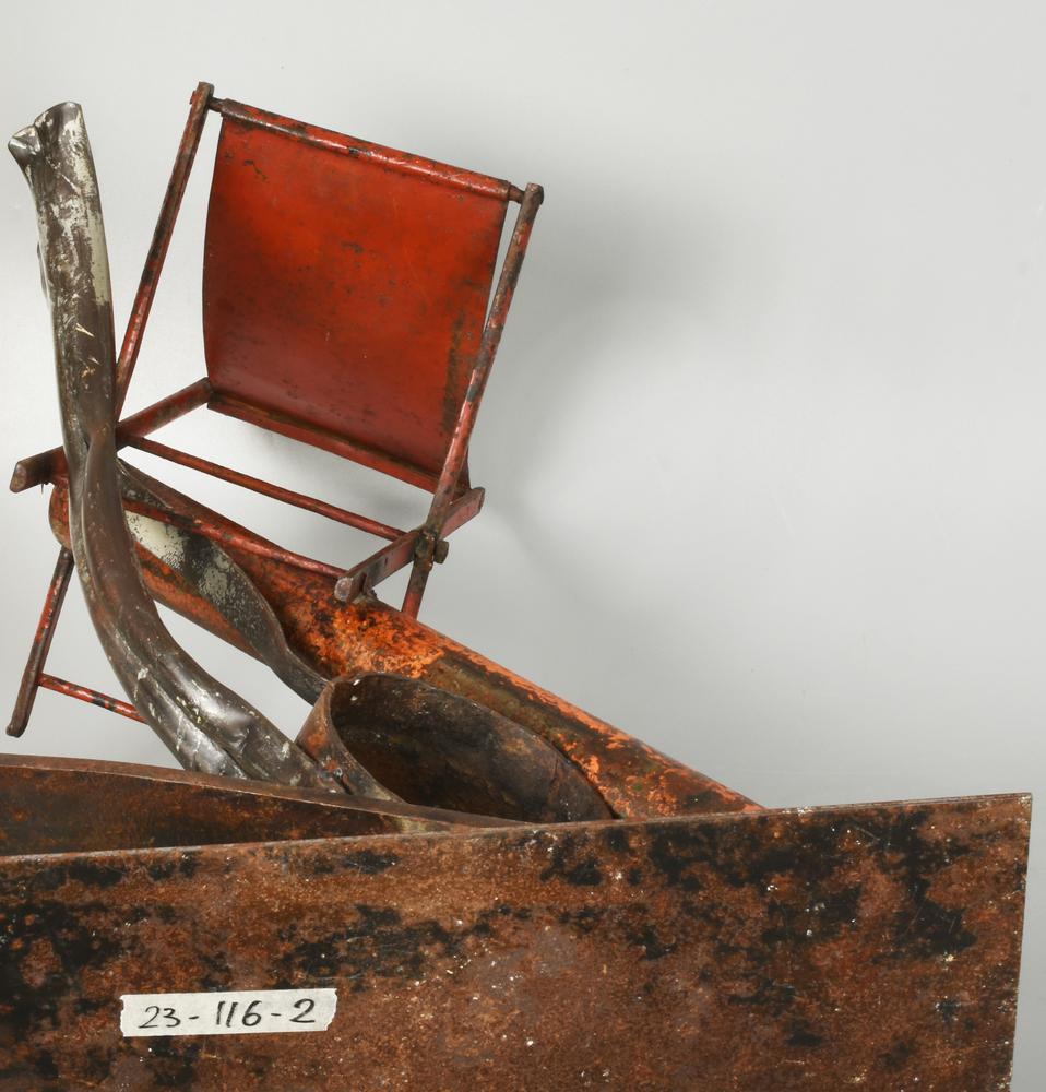 scultura in ferro battuto, h cm 69, base cm 16,5x40