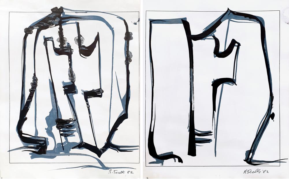 Roberto Tirelli STUDI PER SCULTURE,1982 china su carta, cm 32x24,5 ciascuno...