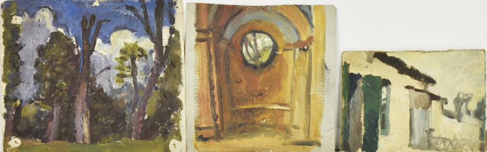 Enrico Allimandi LOTTO DI 3 BOZZETTI - 2 olio su frammento di tela, 15x17 cm...