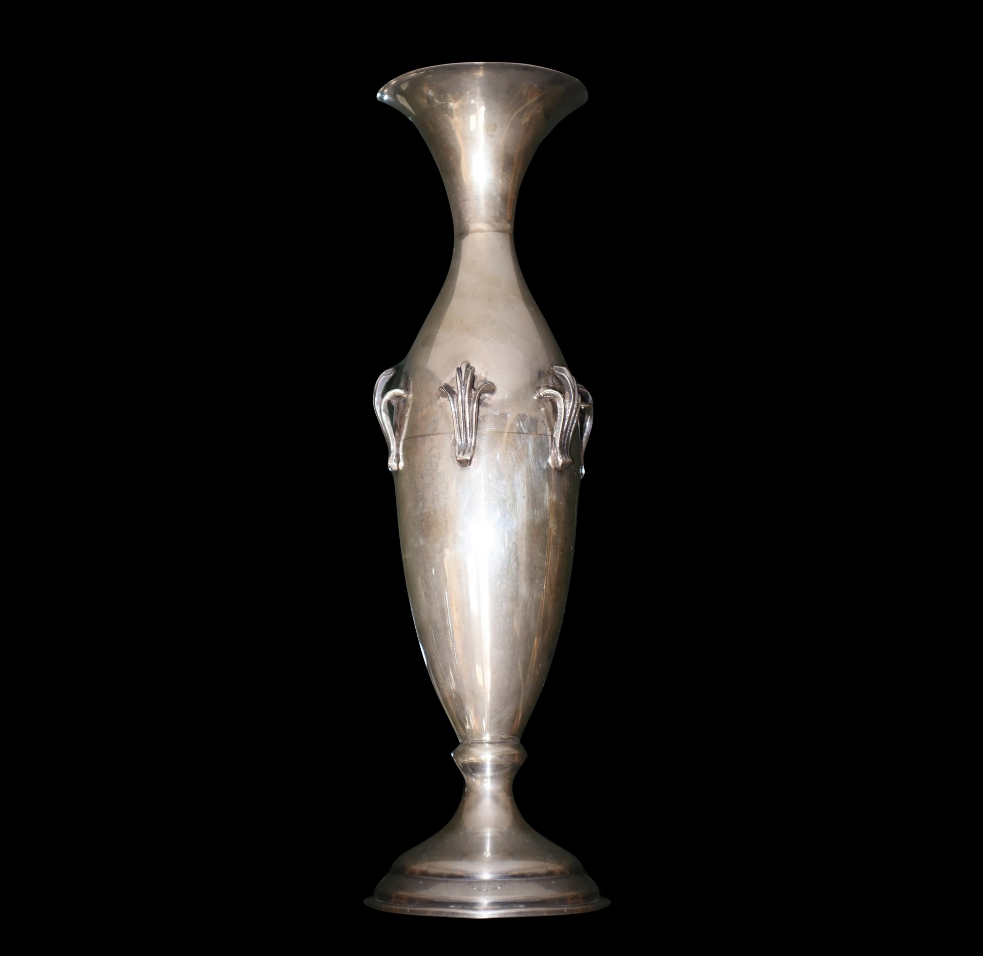 Vaso ad anfora in argento 800, con applicazioni a sbalzo.