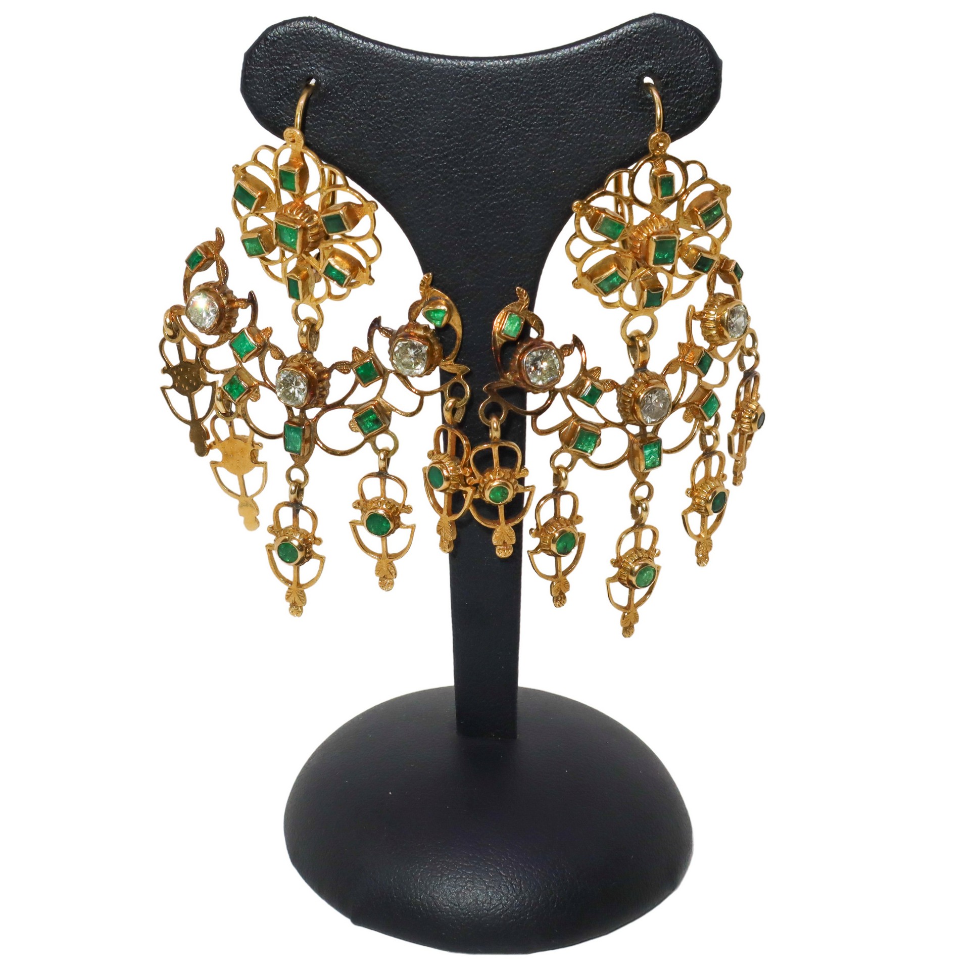 Lot 103 | Importanti orecchini con brillanti e smeraldi taglio antico