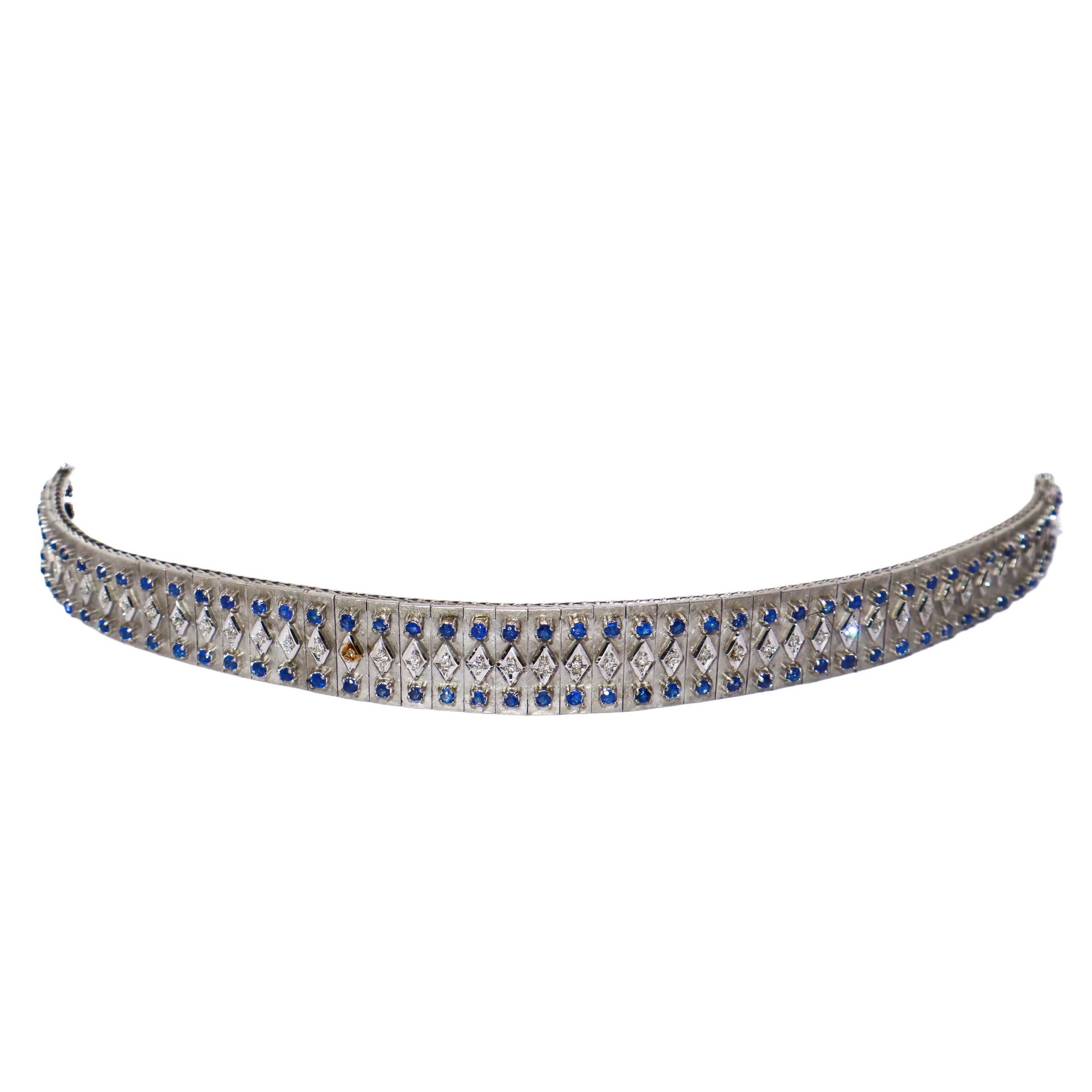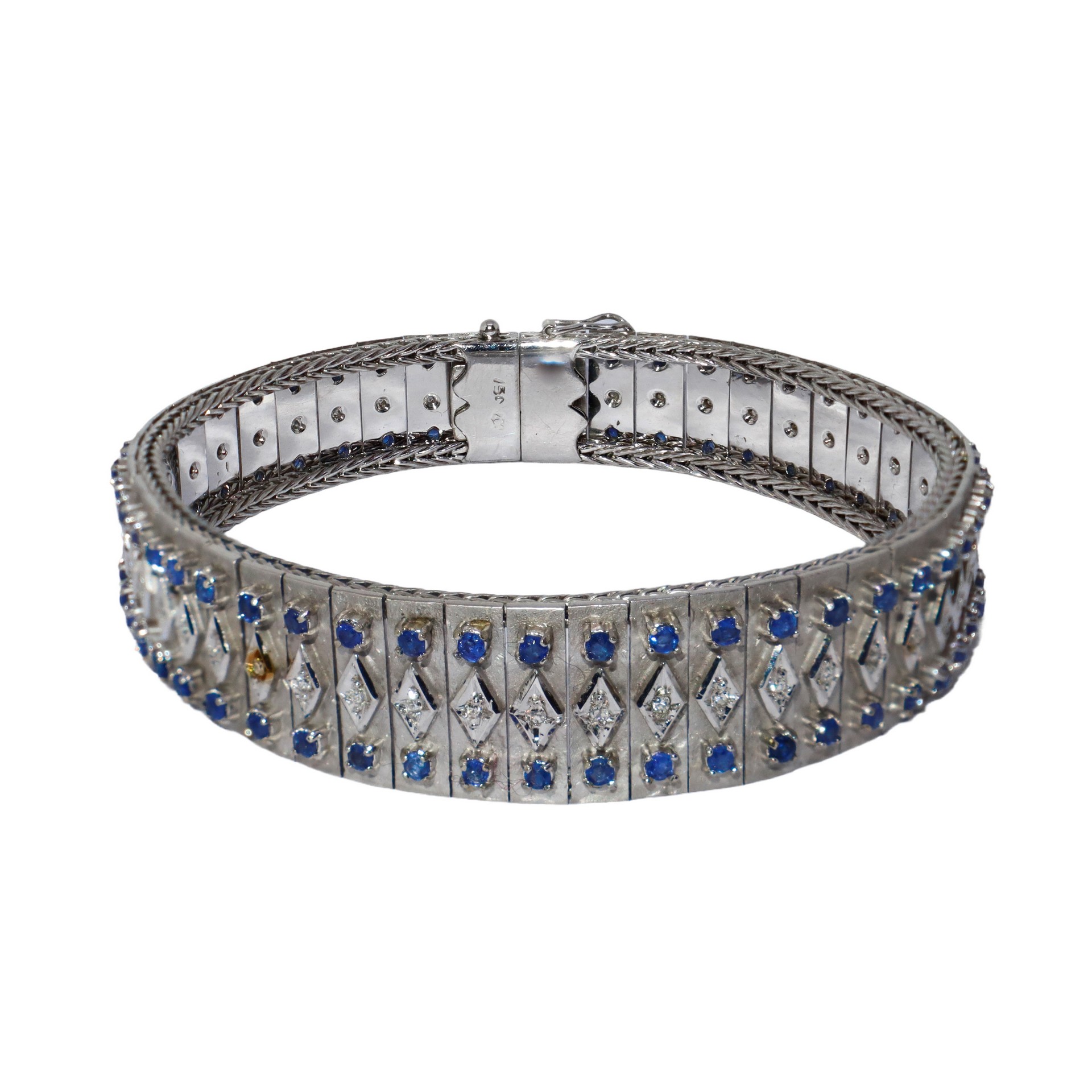Bracciale semirigido in oro bianco con brillanti e zaffiri 37 gr