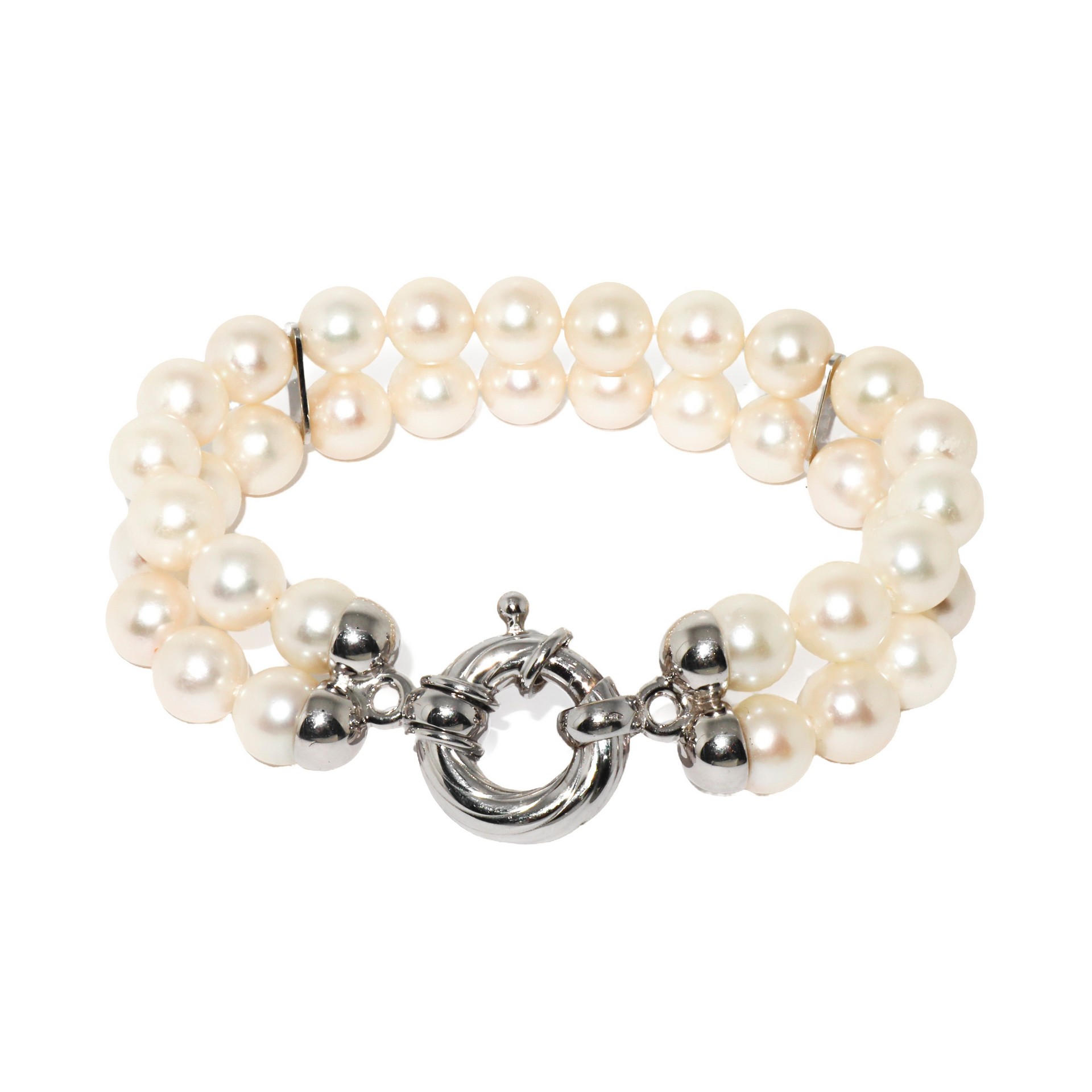 Bracciale di perle con susta in oro a doppio filo Perla diamentro 9 mm, oro gr 9,7