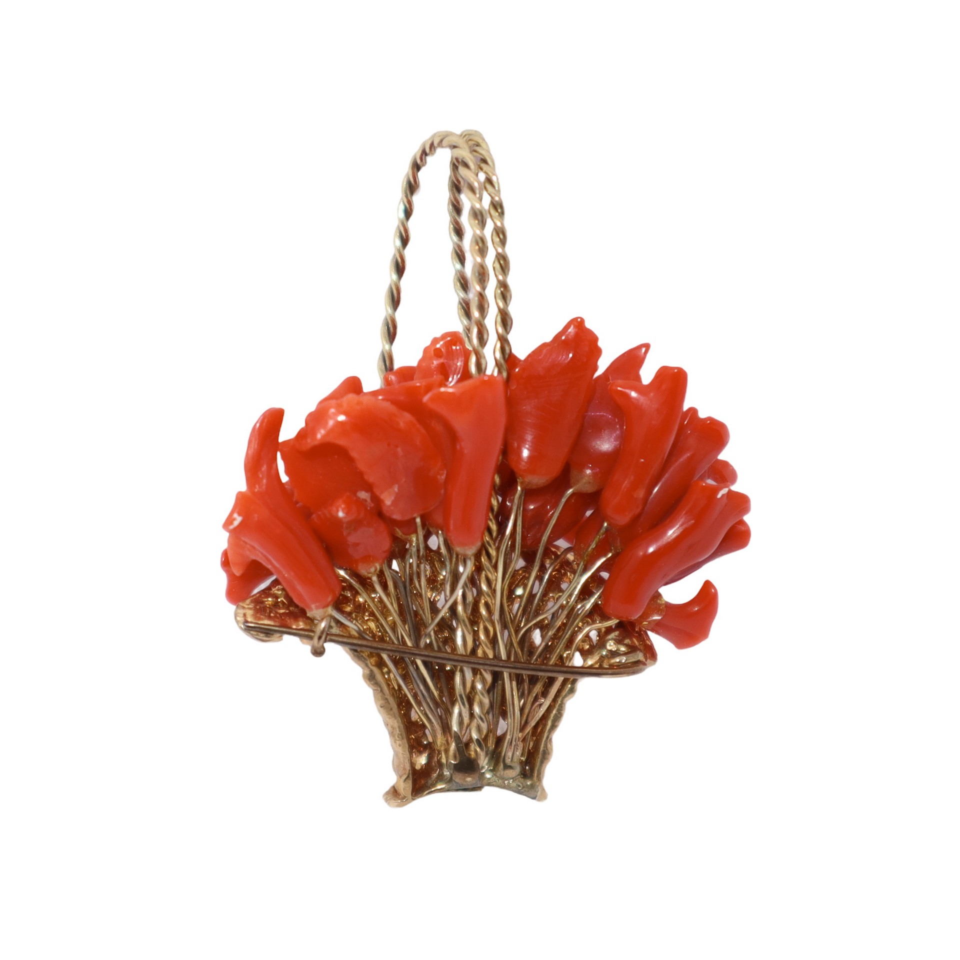 Pentendtif/Spilla a cesto con fiori in corallo, L'Oro di Sciacca cm 6 x5