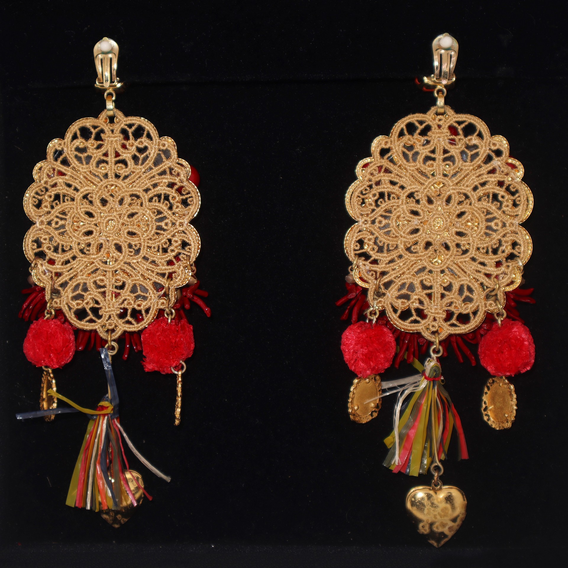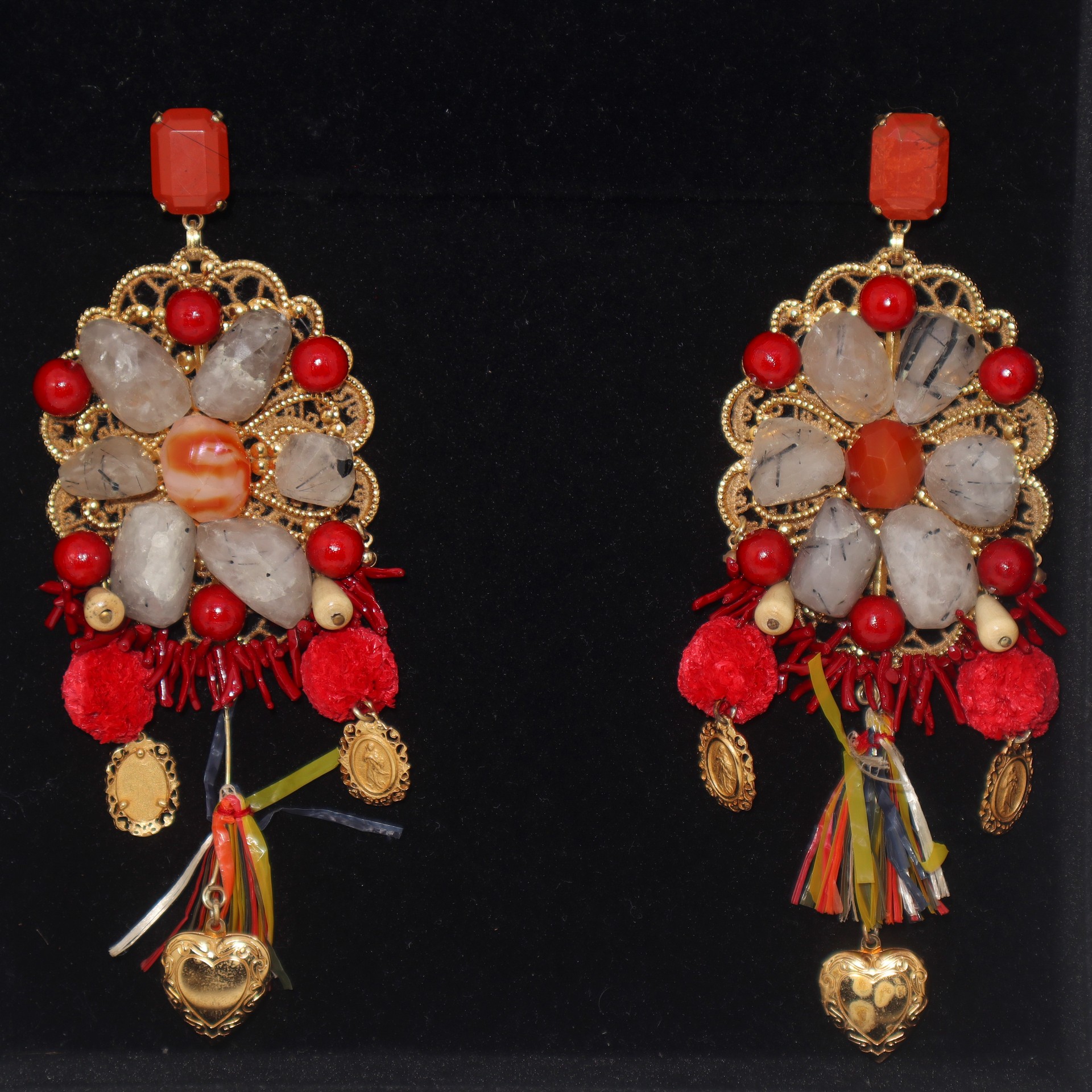 Lot 173 | Dolce & Gabbana - Orecchini in metallo dorato con pietre dure e pendaglio a forma di cuore