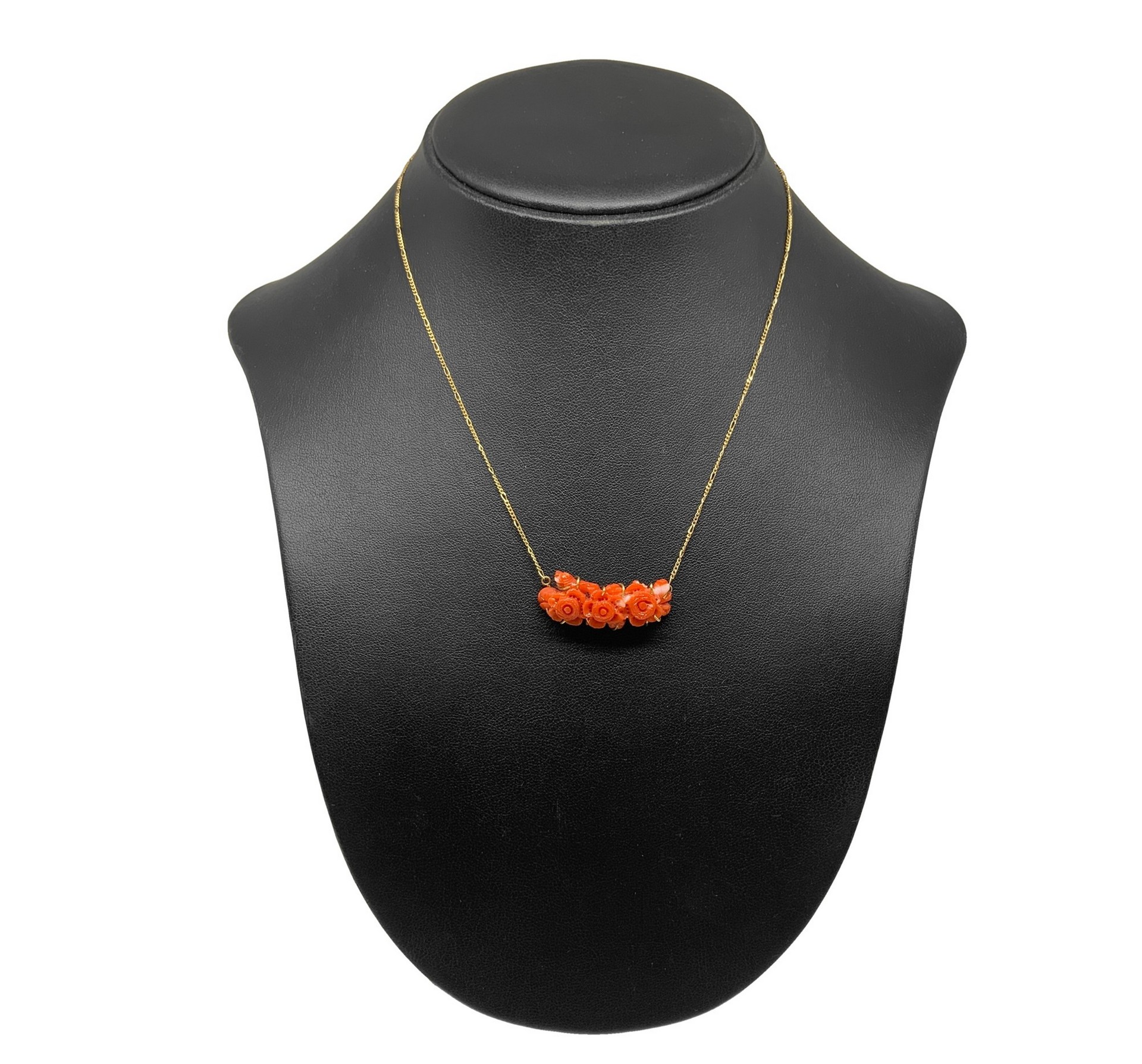 Collana in oro , 20° secolo Gr. 7,6 Piccola catena in oro giallo con centrale a forma di fiori in corallo rosso.Piccola catena in oro giallo con centrale a forma di fiori in corallo rosso.