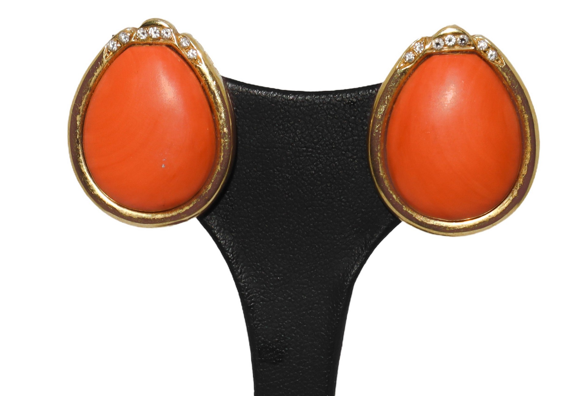 Grandi orecchini in oro 18kt, coralli e brillanti 0,16ct Gr 27,3