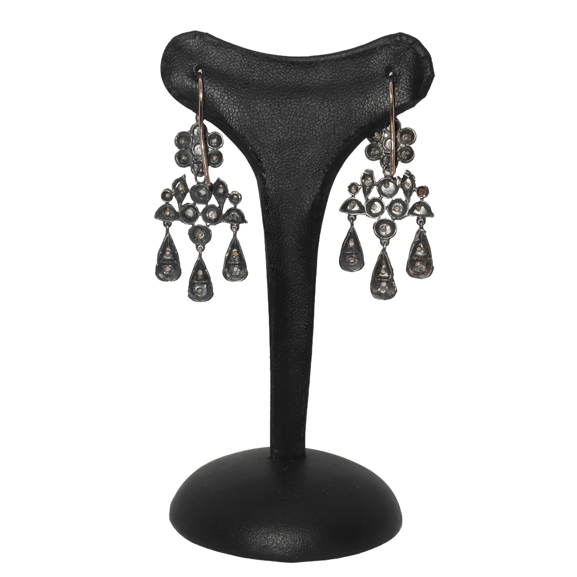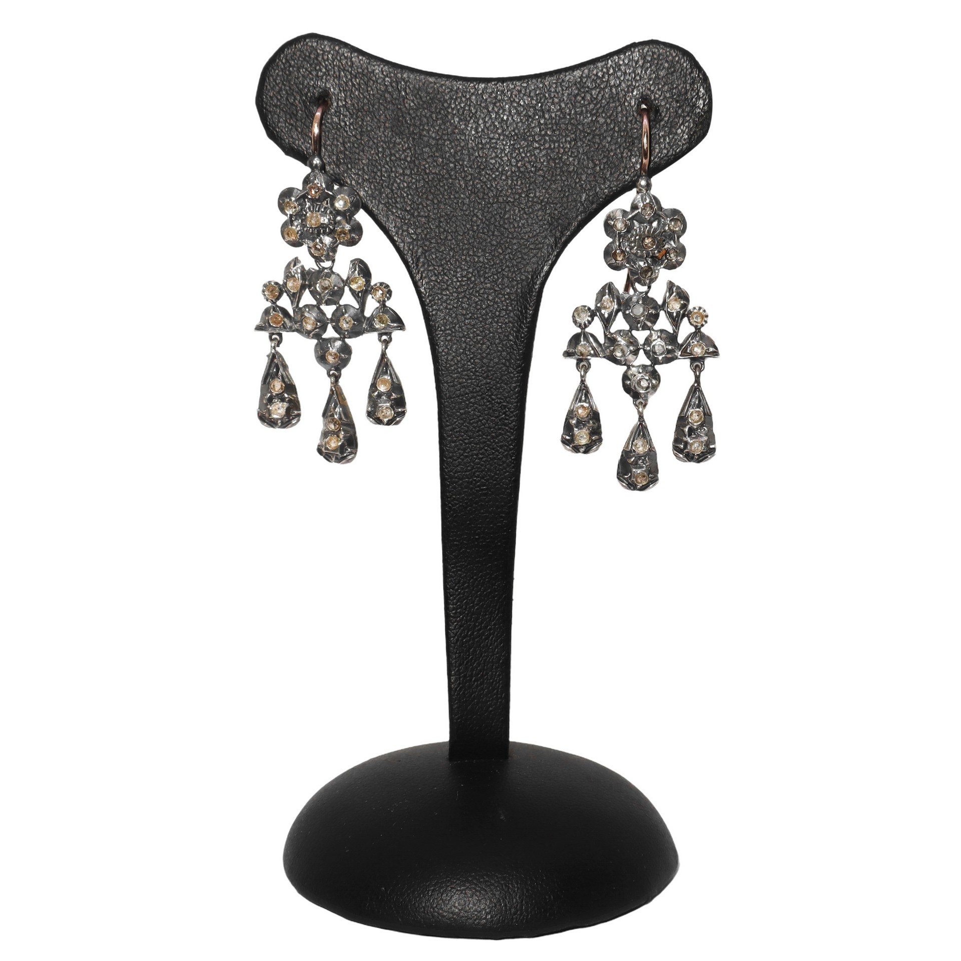 Orecchini con pendenti in oro 9 kt, argento e diamanti taglio rosa cm 4,5