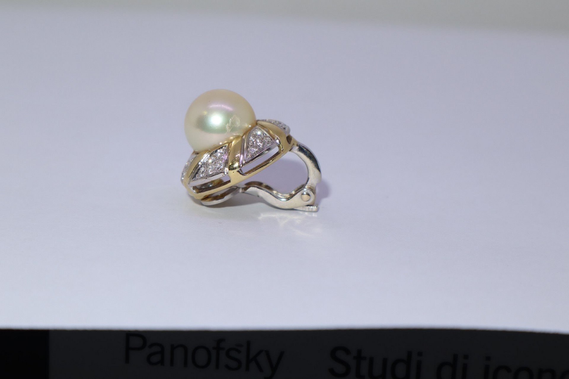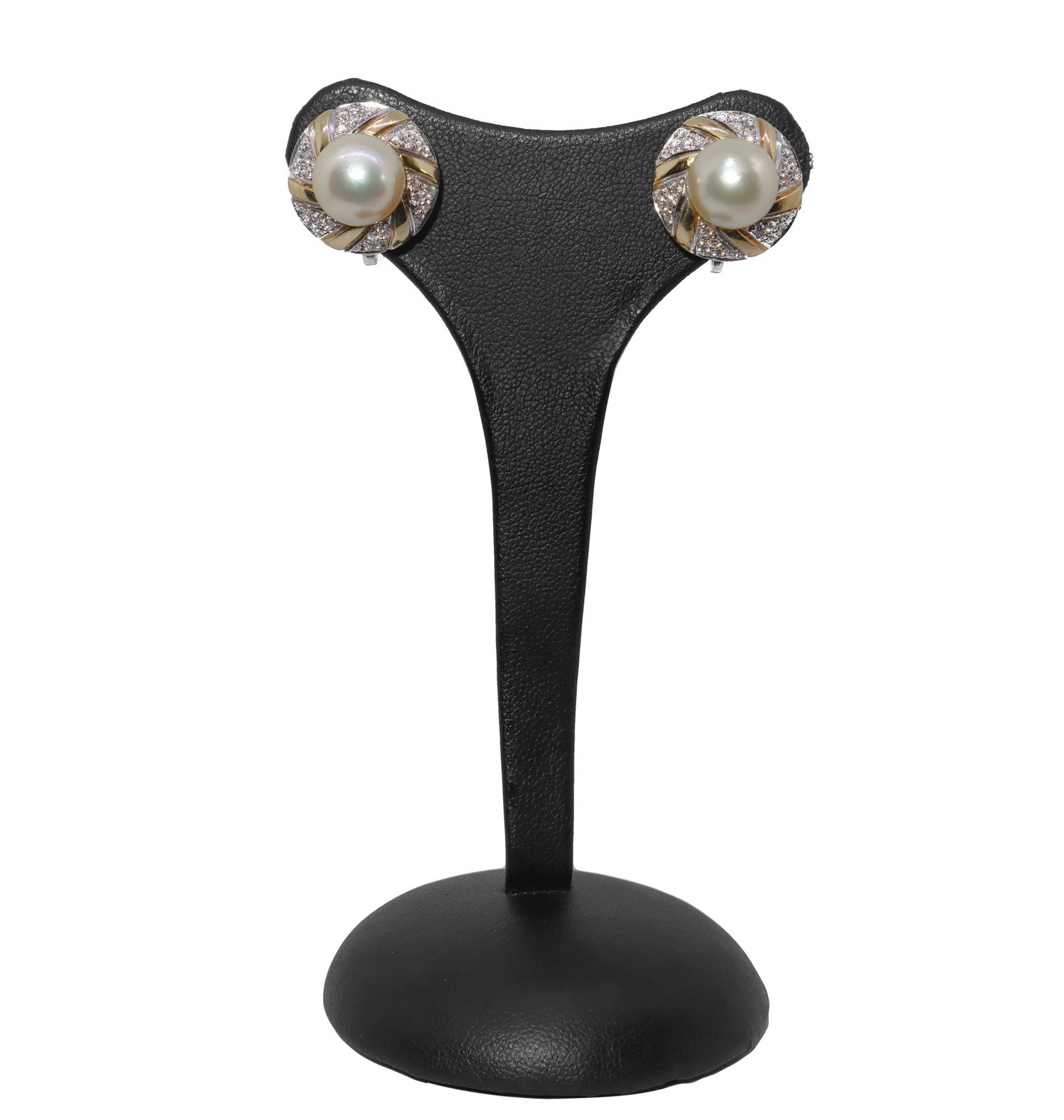 Orecchini in oro 18 kt e con perla centrale e diamanti taglio brillante 0,40 kt Gr 14.3