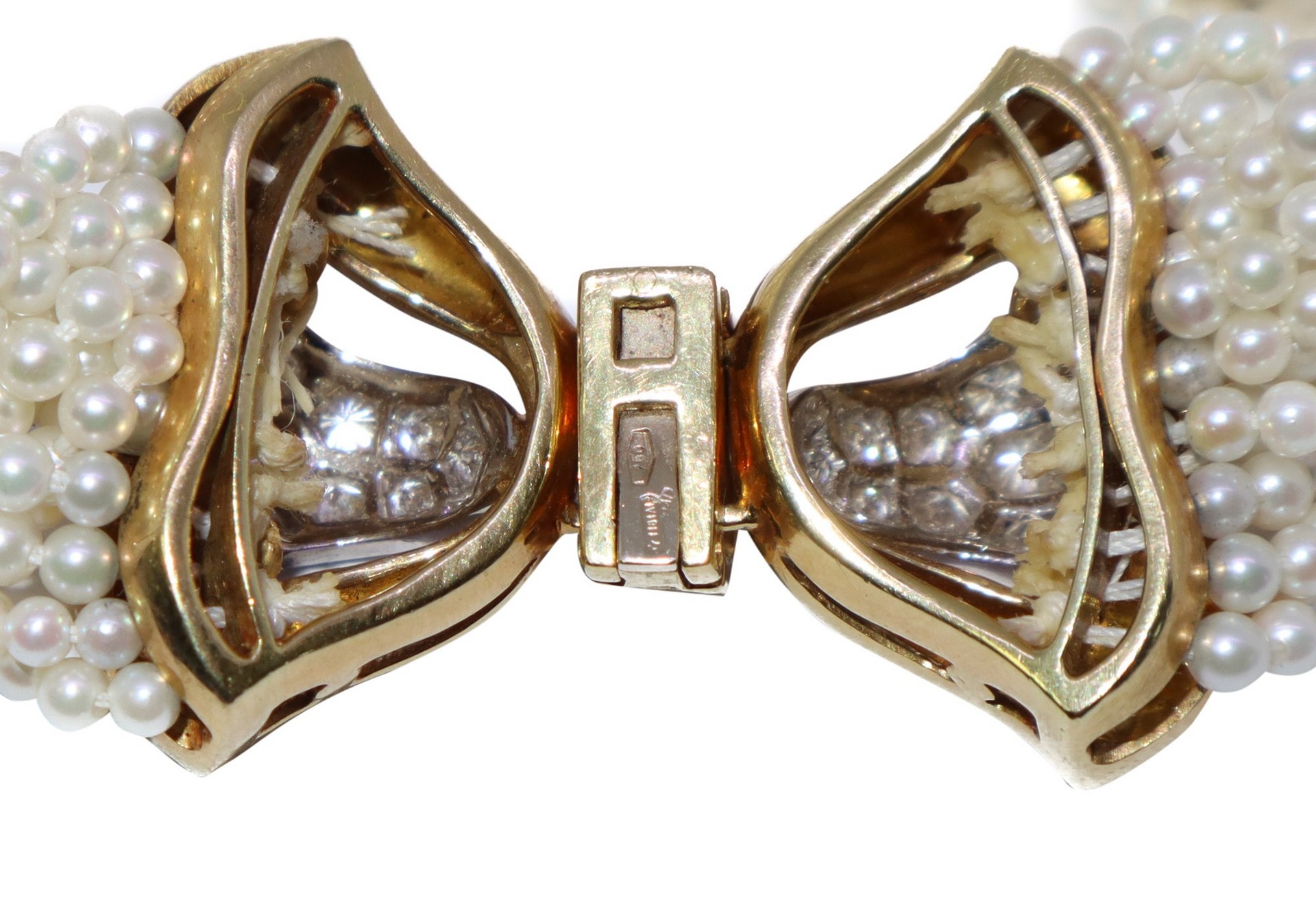 Bracciale in micro perline coltivate L 19 cm Susta in oro con brillanti. KT 0,45.Susta in oro con brillanti. KT 0,45.