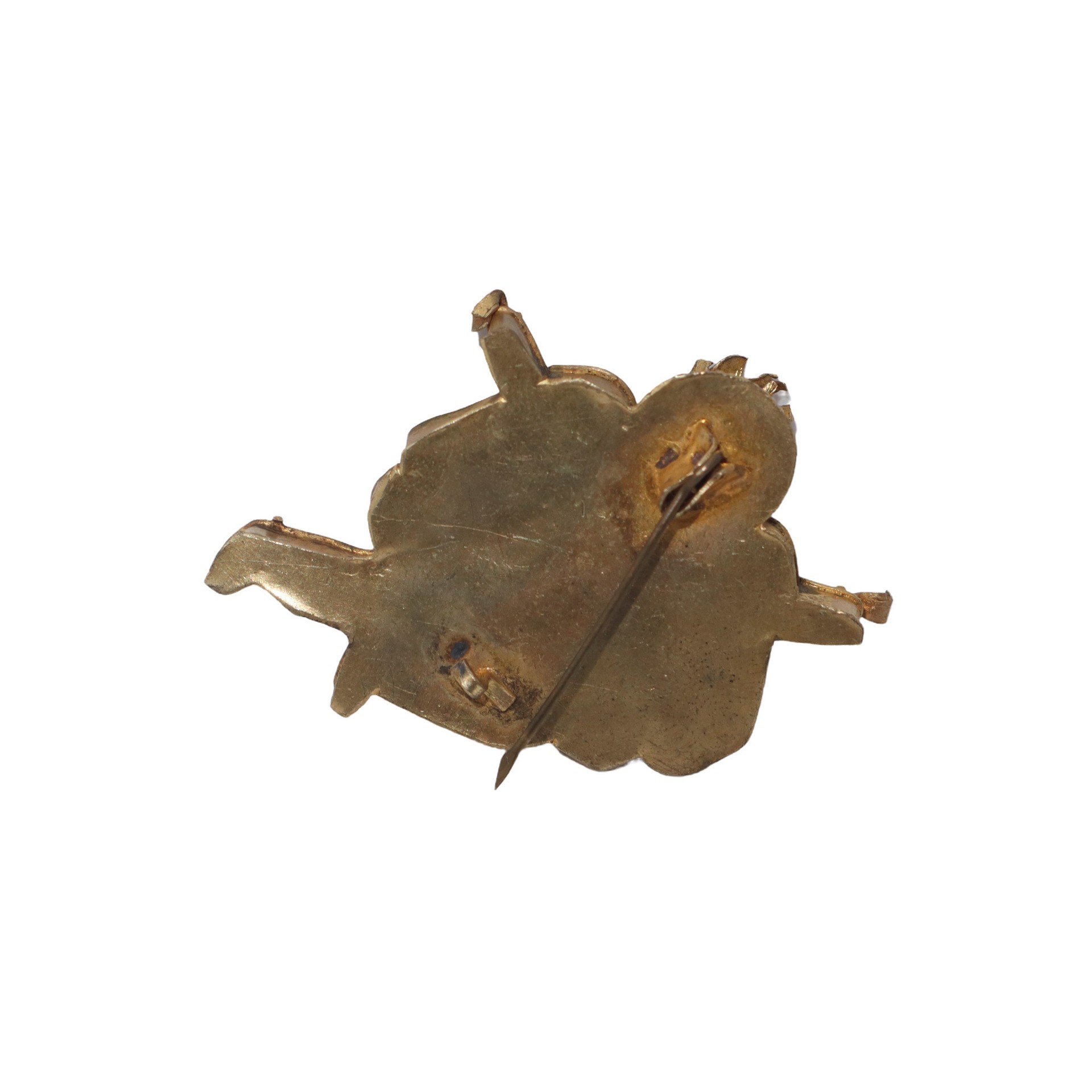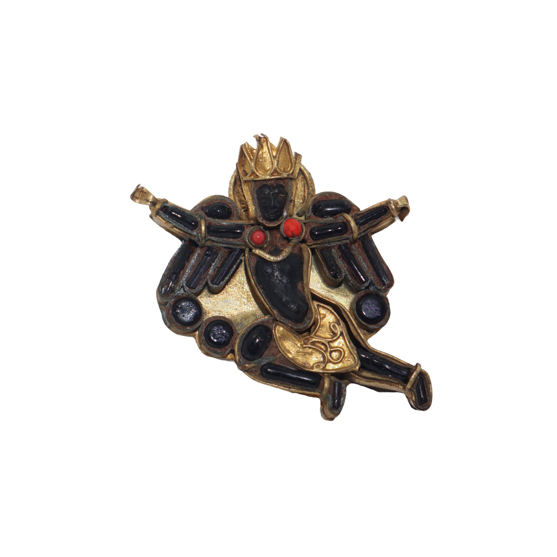 Spilla raffiguarnte Dea in ottone, onice e coralli