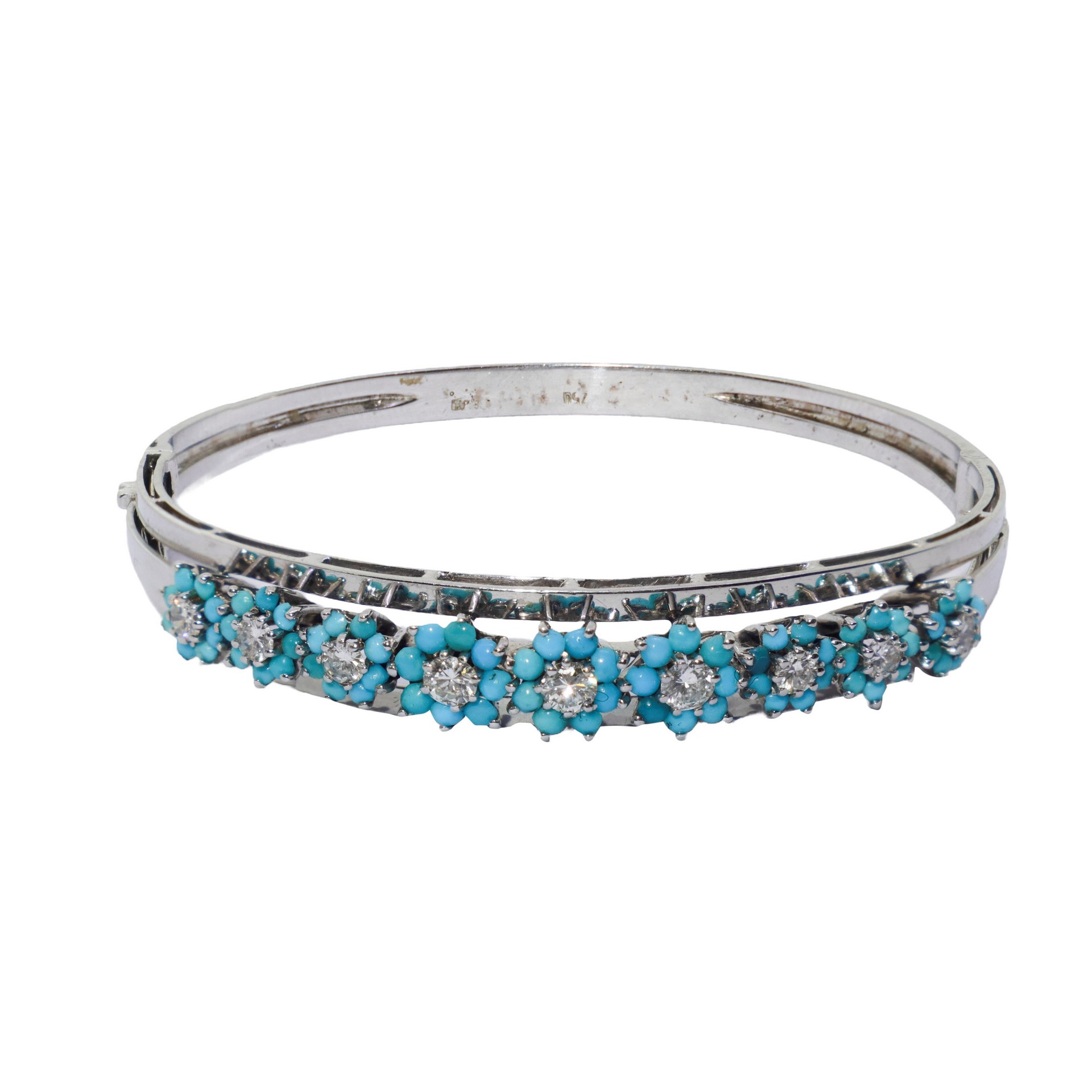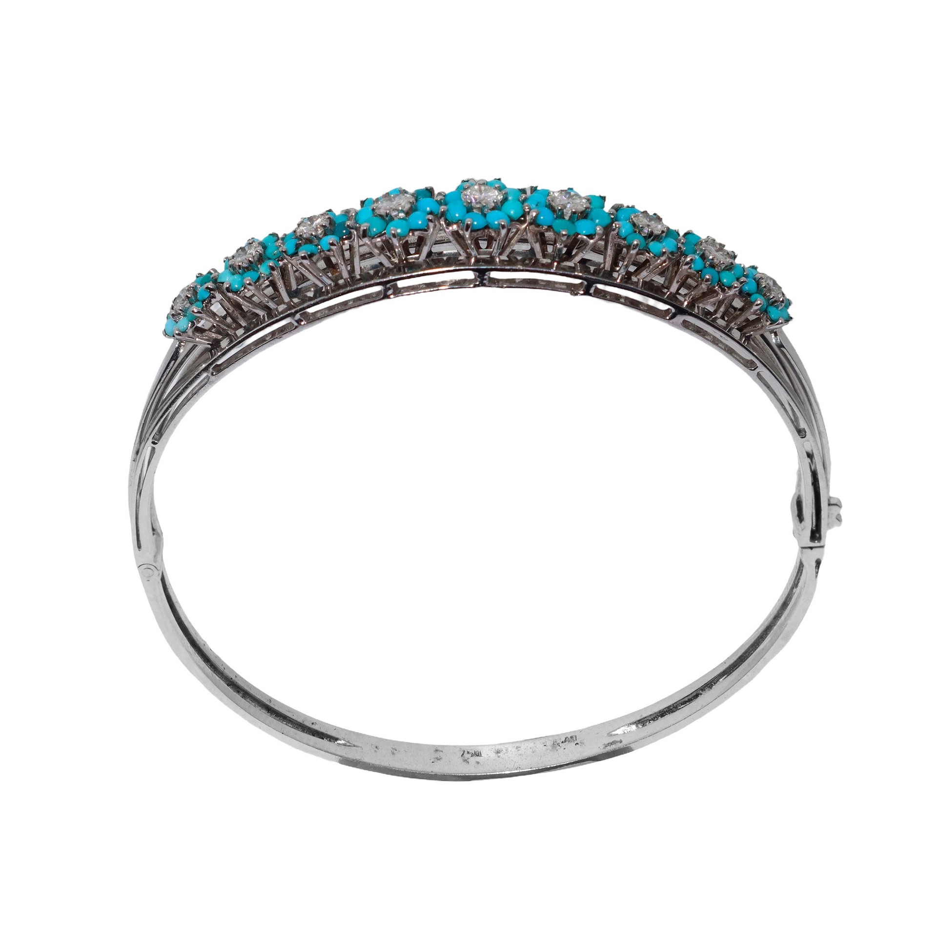 Lot 251 | Bracciale in oro bianco con piccole roselline con al centro brillante e turchesi
