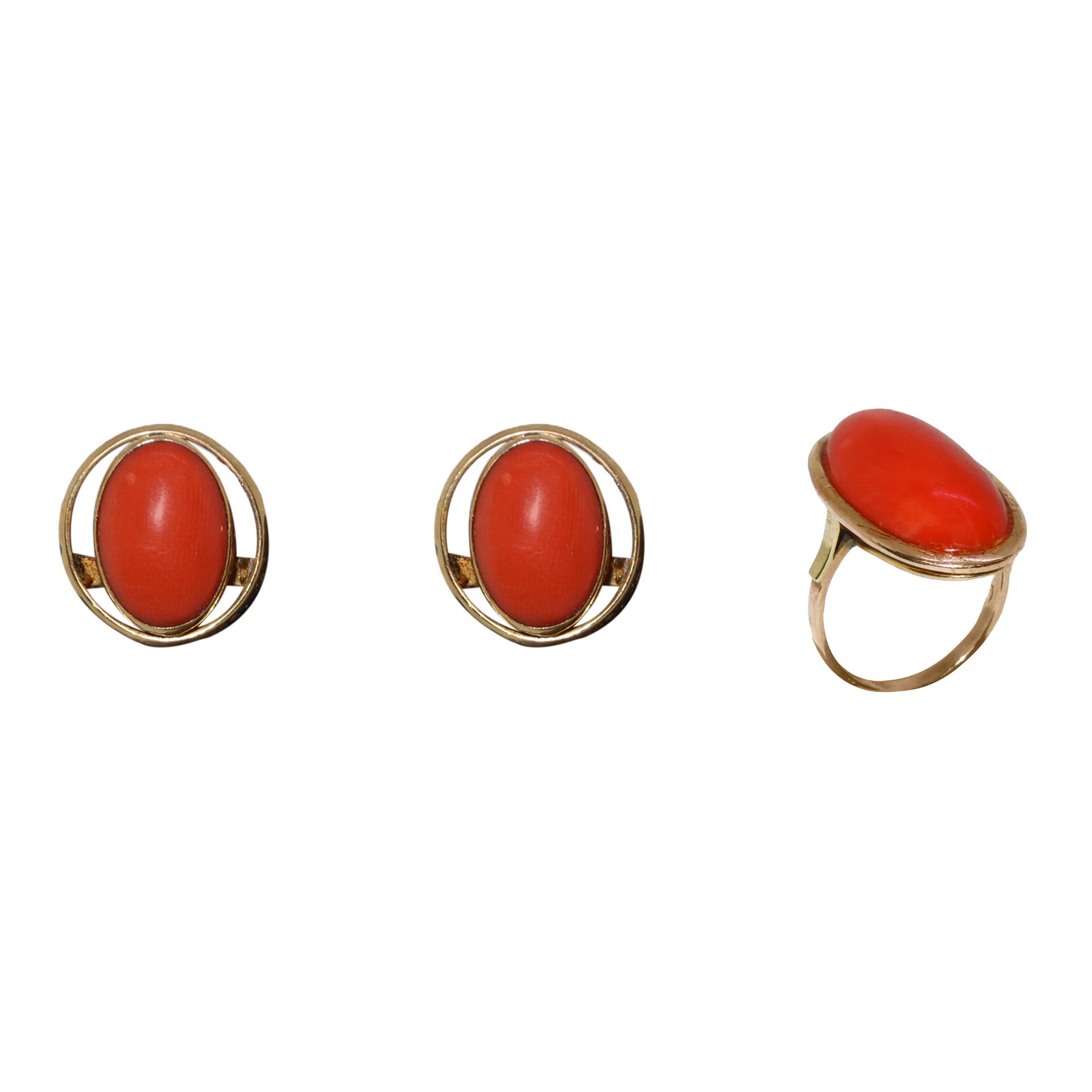 Anello e orecchini in oro 750 con corallo 11 gr totale
